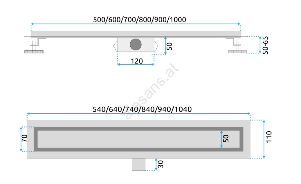 • 80 cm langer Linienablauf in Edelstahloptik.