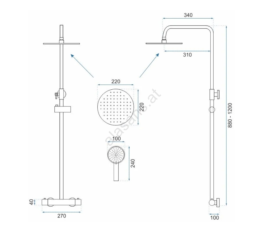• Verstellbereich der Duschstange: 88 - 120 cm.