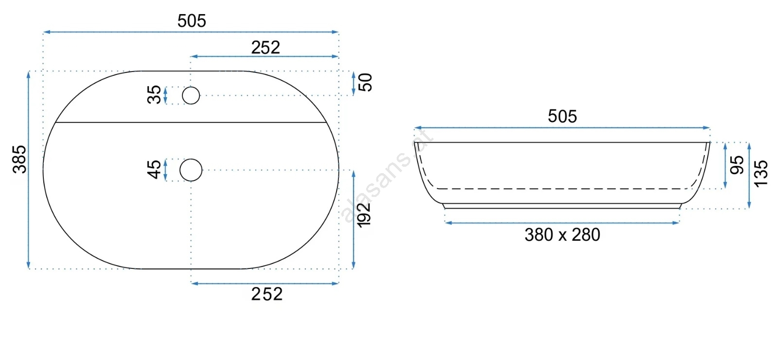 • REA-U4620 - Aufsatzwaschbecken AURA 38,5x50,5 cm Keramik/glänzend weiß