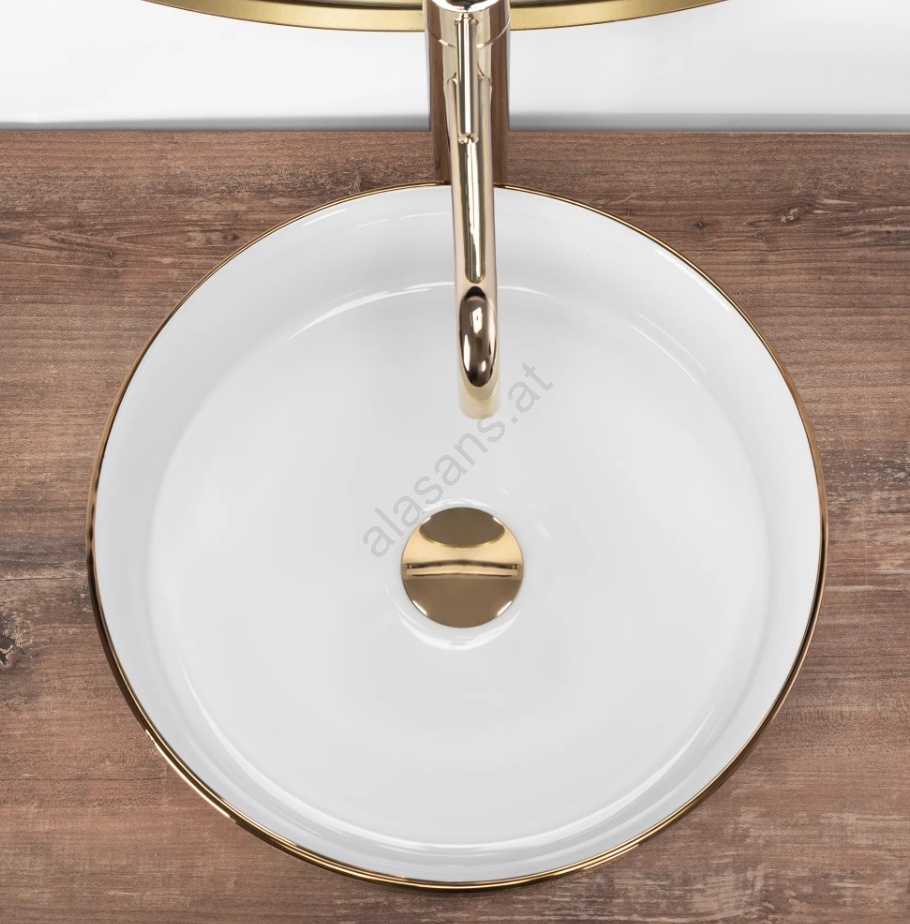REA-U6630 - Aufsatzwaschbecken SAMI Ø 36 cm Keramik/weiß/gebürstetes Gold