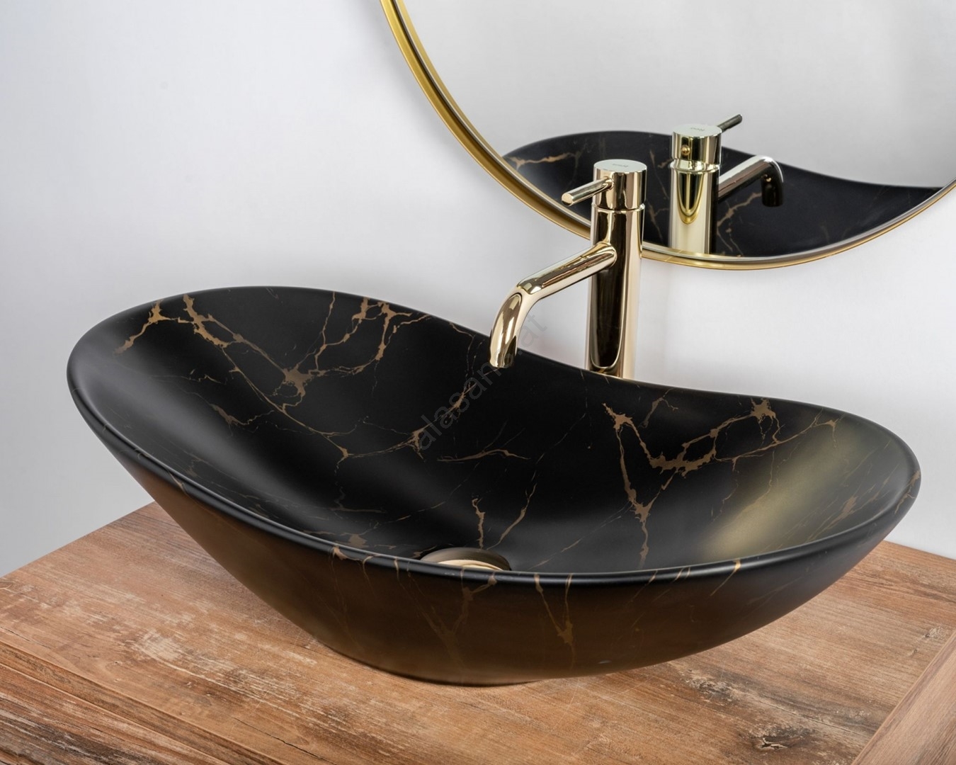REA-U7478 - Aufsatzwaschbecken ROYAL 36x62 cm Keramik/Schwarz/Marmor-Dekor