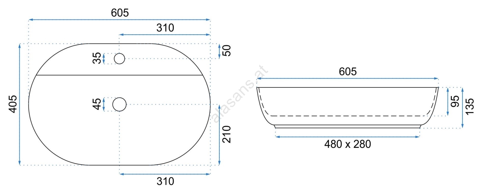 REA-U7900 - Aufsatzwaschbecken AURA 40,5x60,5 cm Keramik/Hochglanzweiß