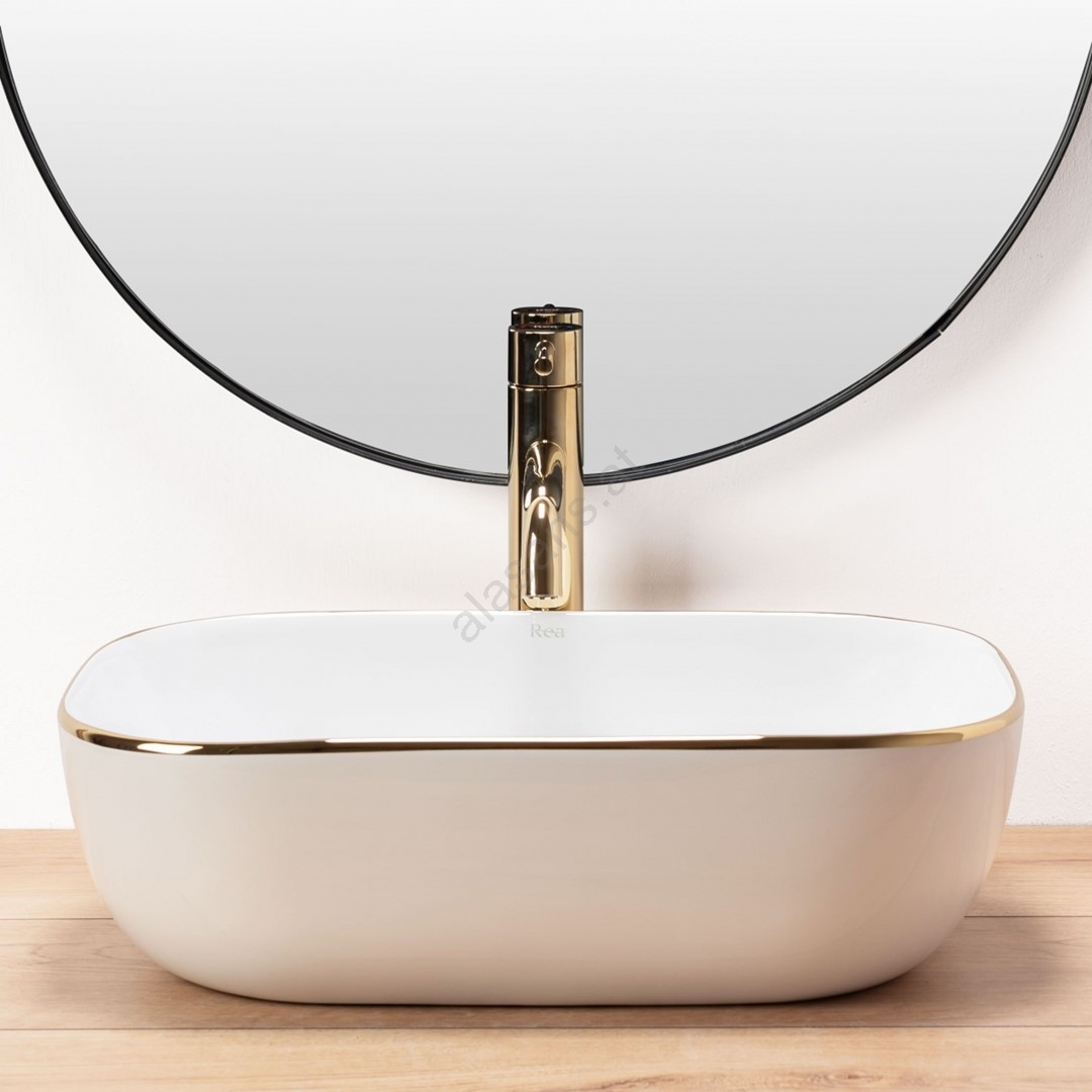 REA-U8736 - Aufsatzwaschbecken BELINDA 33,5x46,5 cm Keramik/weiß/gold