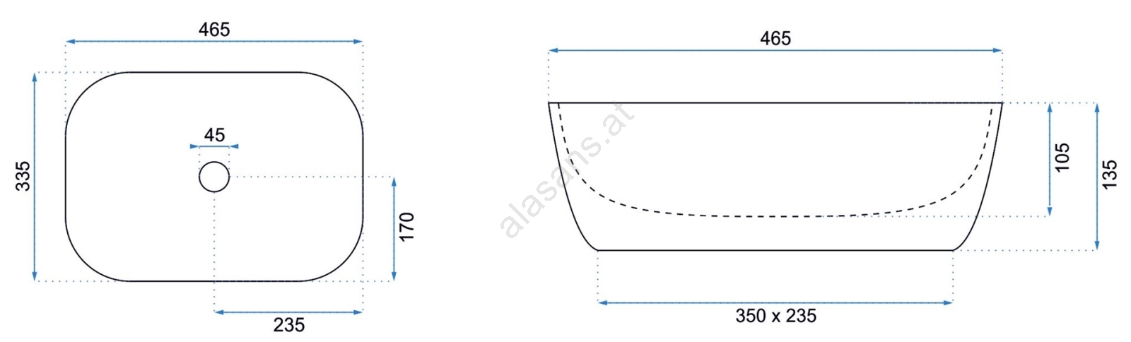 • REA-U6521 - Aufsatzwaschbecken BELINDA SLIM 33x46,5 cm Keramik/Hochglanzweiß