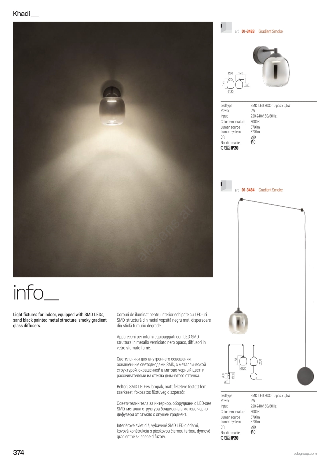 Redo 01-3485 - Dimmbare LED-Wandleuchte KHADI 3xLED/5,5W/230V CRI 90 Ø 12 cm schwarz/rauchfarben