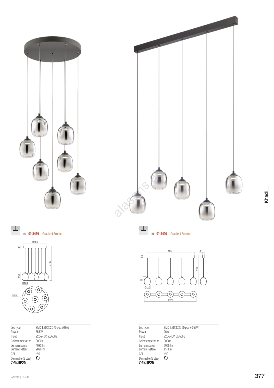 Redo 01-3490 - LED dimmbare Hängeleuchte an Drahtseil KHADI 5xLED/5,2W/230V CRI 90 schwarz/rauchgrau