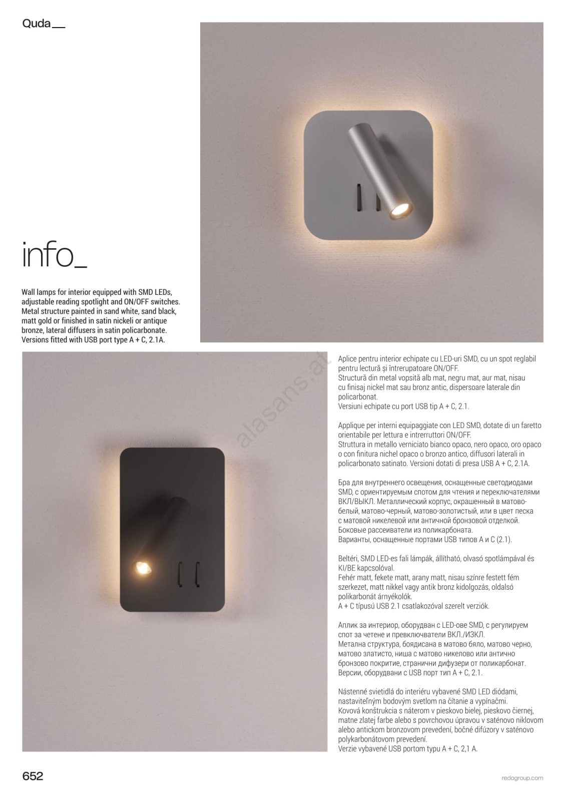 Redo 01-4473 - LED-Wandleuchte QUDA LED/6W/230V + LED/3W CRI 90 USB, bronzefarben