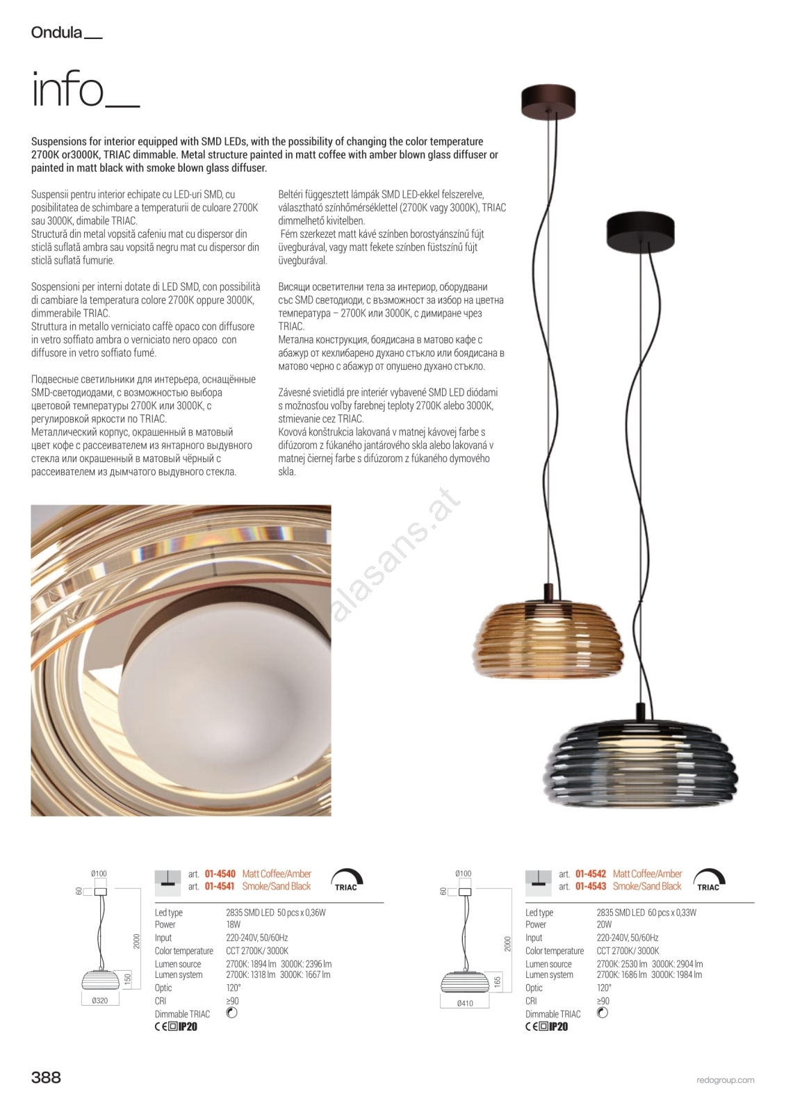 • Redo 01-4540 - Dimmbare LED-Pendelleuchte mit Kabelaufhängung ONDULA LED/12W/230V 2700K/3000K CRI 90 Durchmesser 32 cm Beige/Rauchfarben