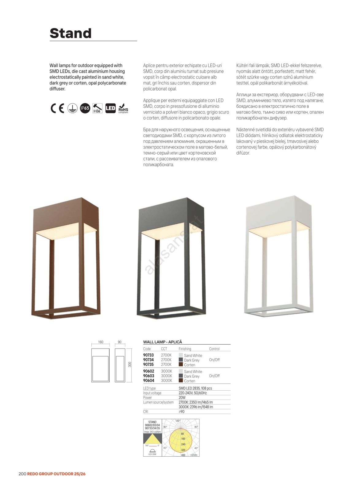 Redo 90604 - LED-Außenwandleuchte STAND, 20 W, 230 V, 3000 K (CRI 90), IP65, braun