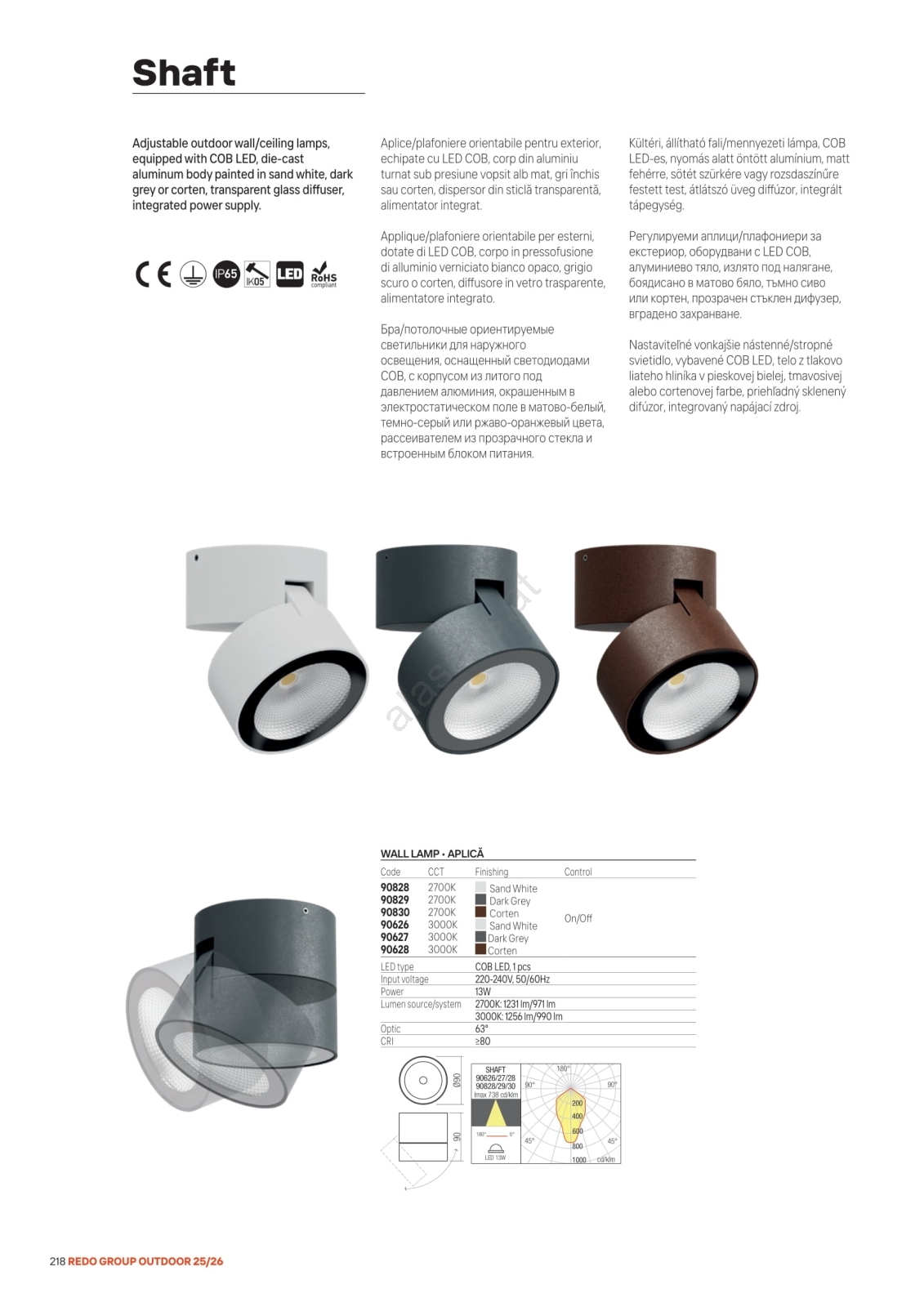 • Redo 90628 - LED-Außenstrahler SHAFT LED/13W/230V 3000K Ø 9 cm IP65 braun