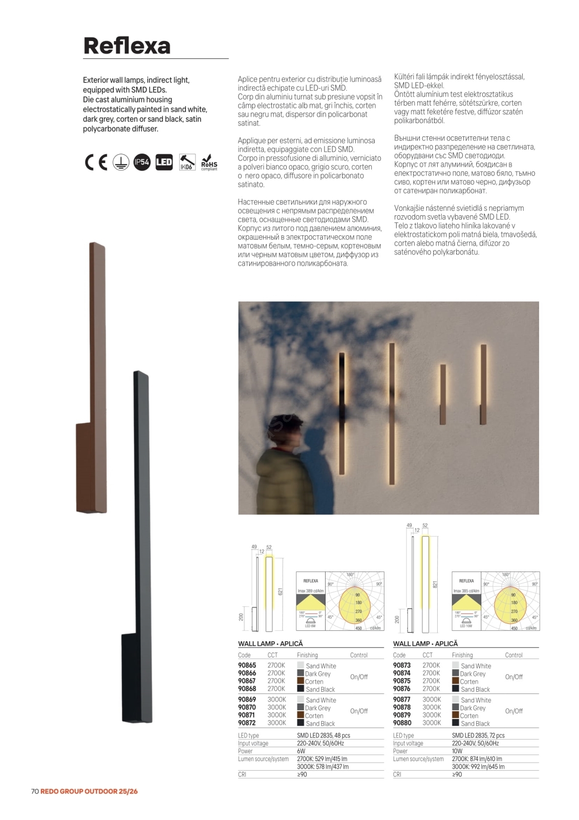 • Redo 90869 - LED-Außenwandleuchte REFLEXA, 6W/230V, 3000 K, CRI 90, IP54, weiß