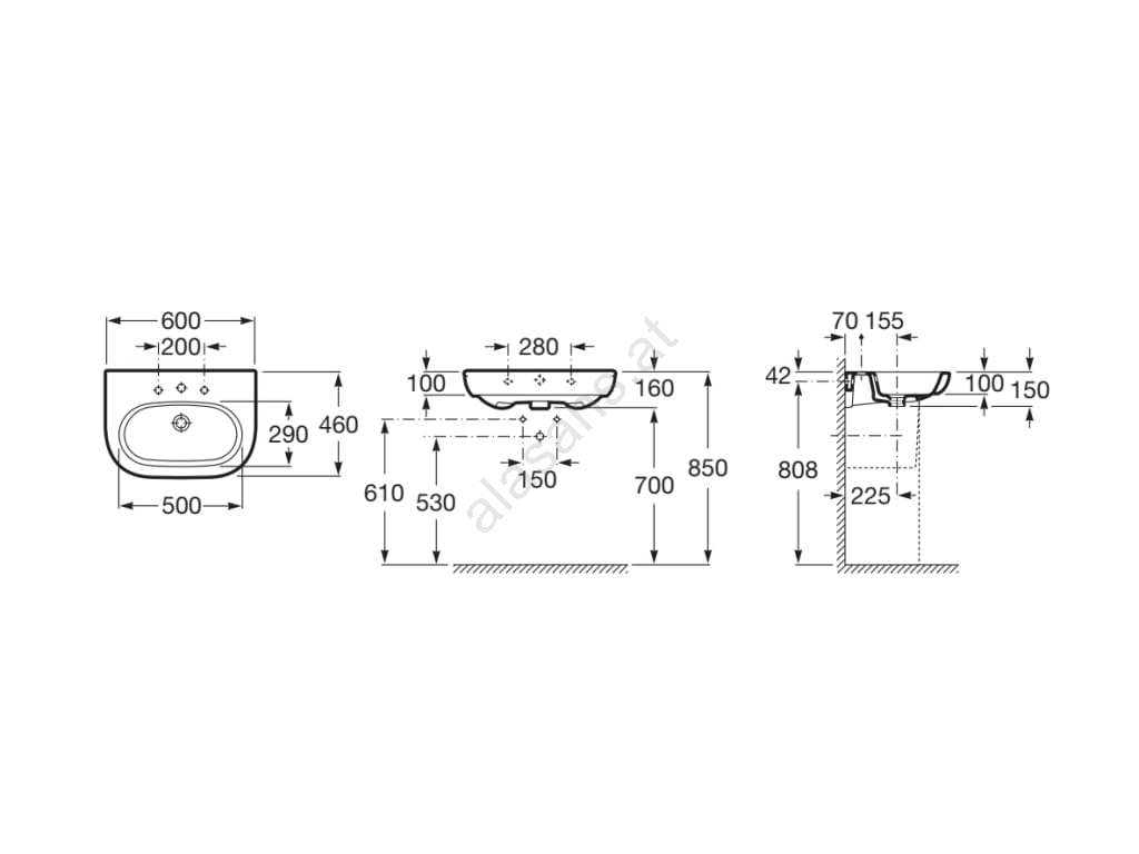 • Lieferumfang: Waschbecken ohne Siphon und Armatur.
