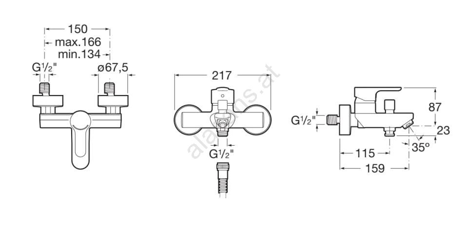 • Wand-Badarmatur für hohen Wasserdruck.