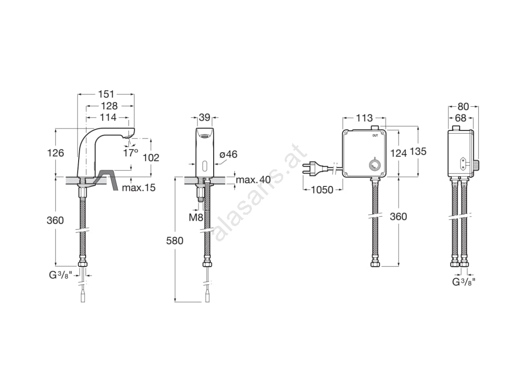 Roca A5A5509C00 - Berührungslose Waschtischarmatur L20 230V Hochglanz-Chrom