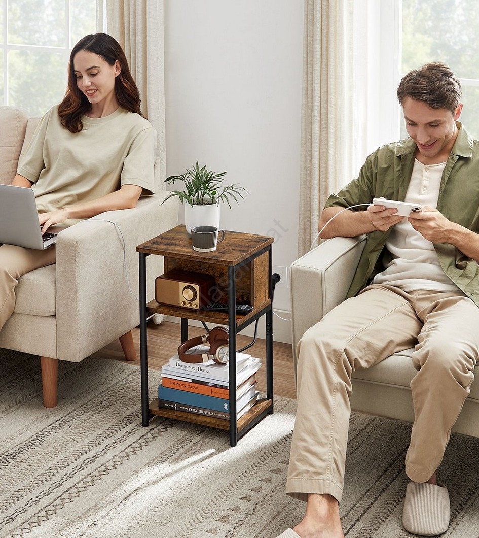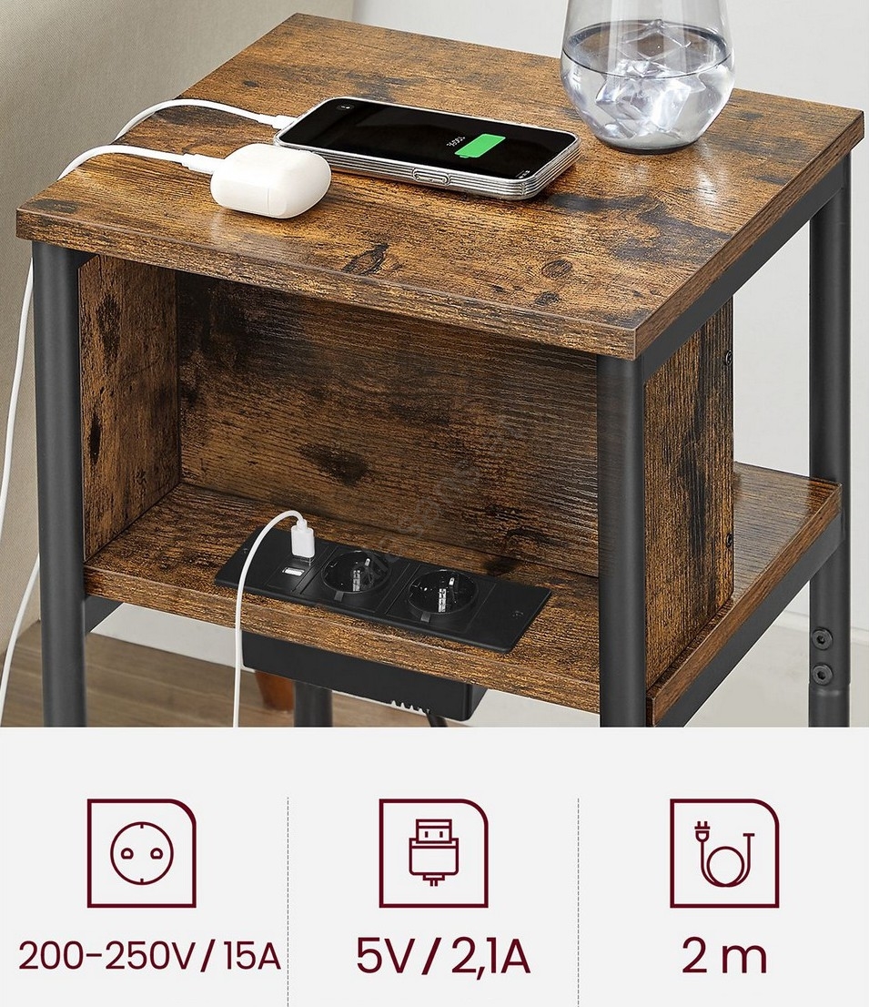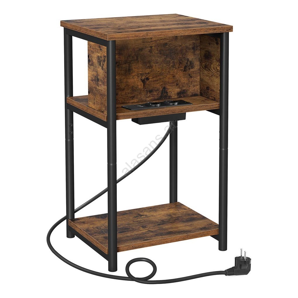ROD Beistelltisch mit integrierten Steckdosen und USB-Anschlüssen, braun/schwarz