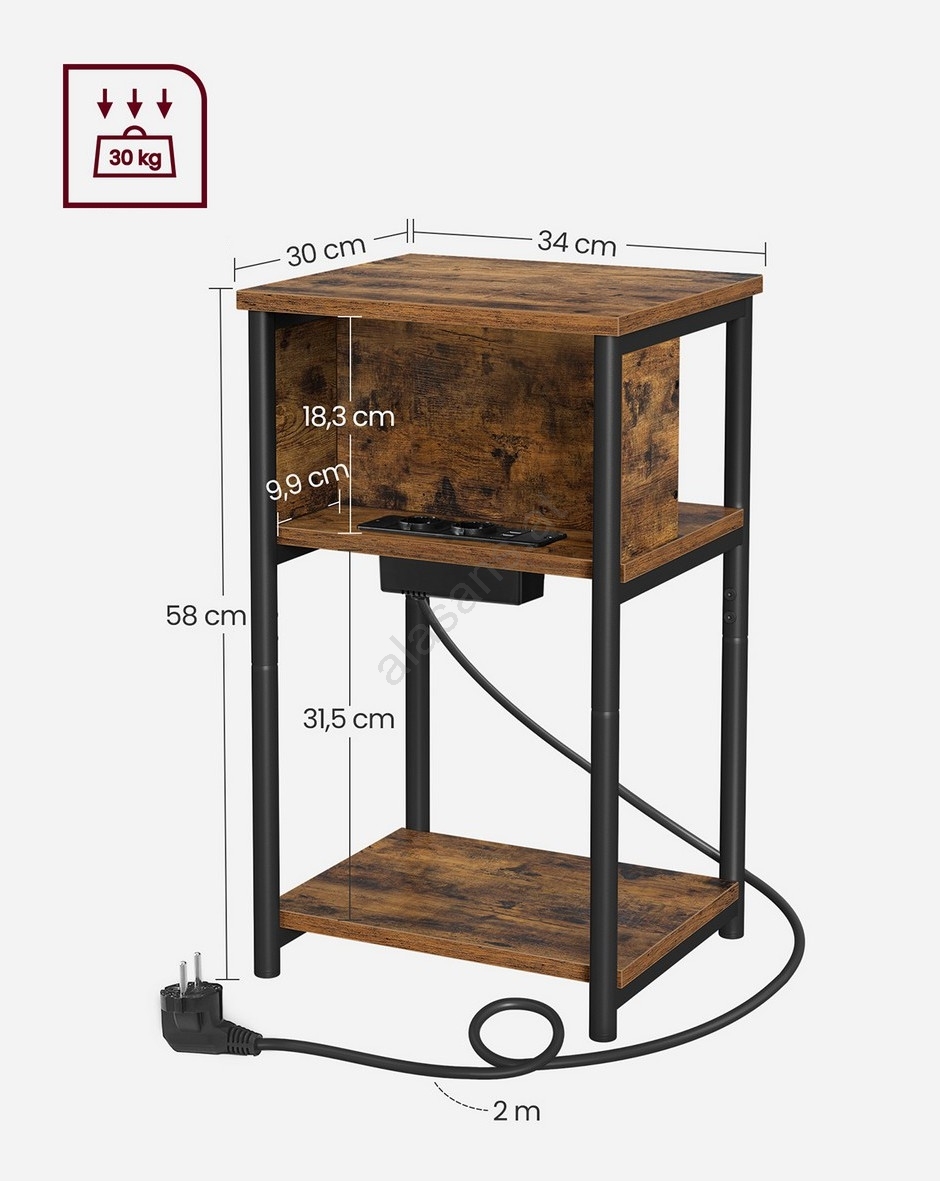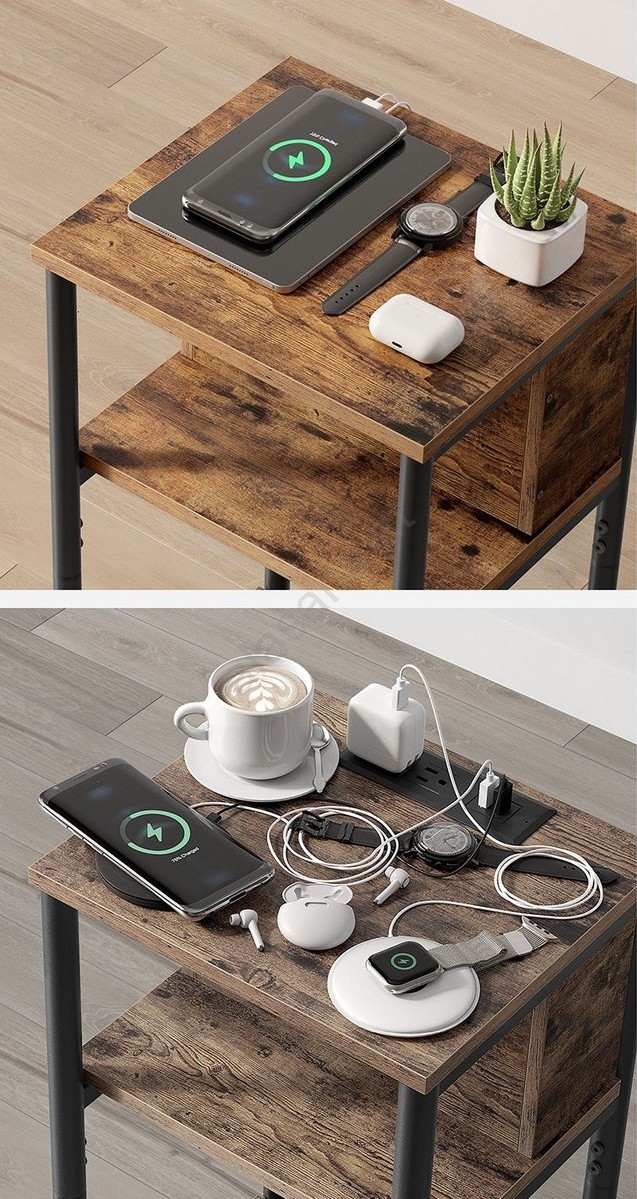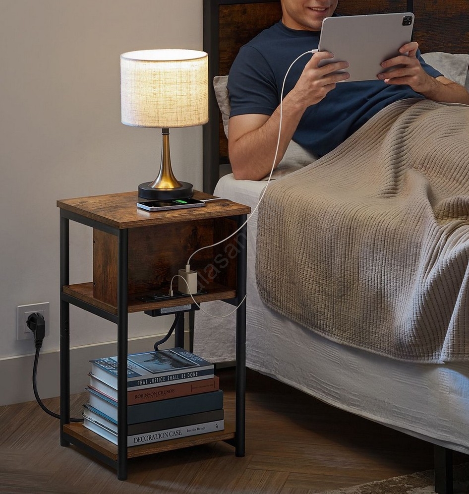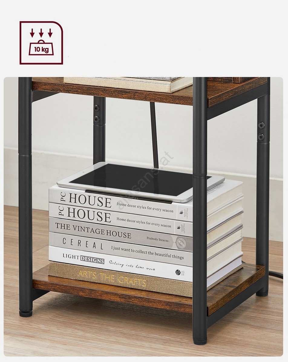 ROD Beistelltisch mit integrierten Steckdosen und USB-Anschlüssen, braun/schwarz