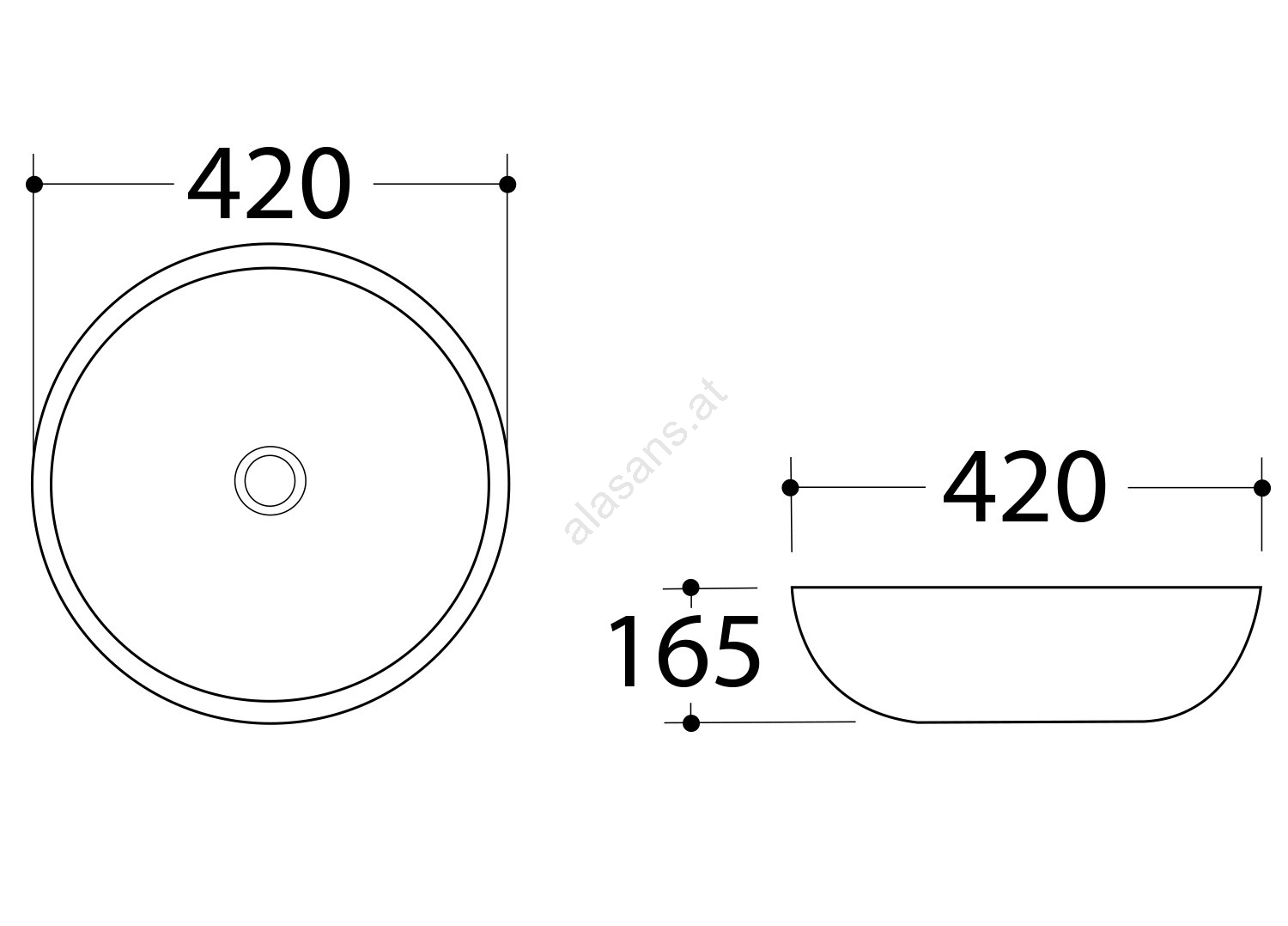 • Das keramische Aufsatzwaschbecken hat einen Durchmesser von 420 mm.