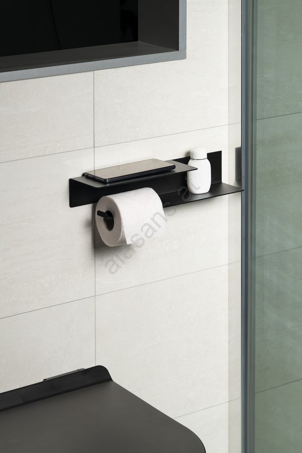 Sapho - Toilettenpapierhalter mit Ablage 9,5x35 cm matt schwarz