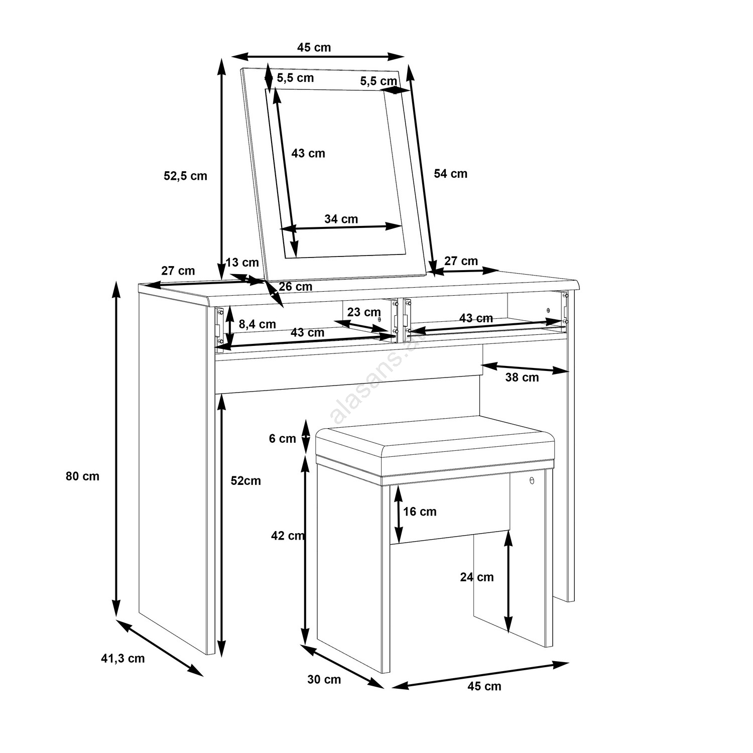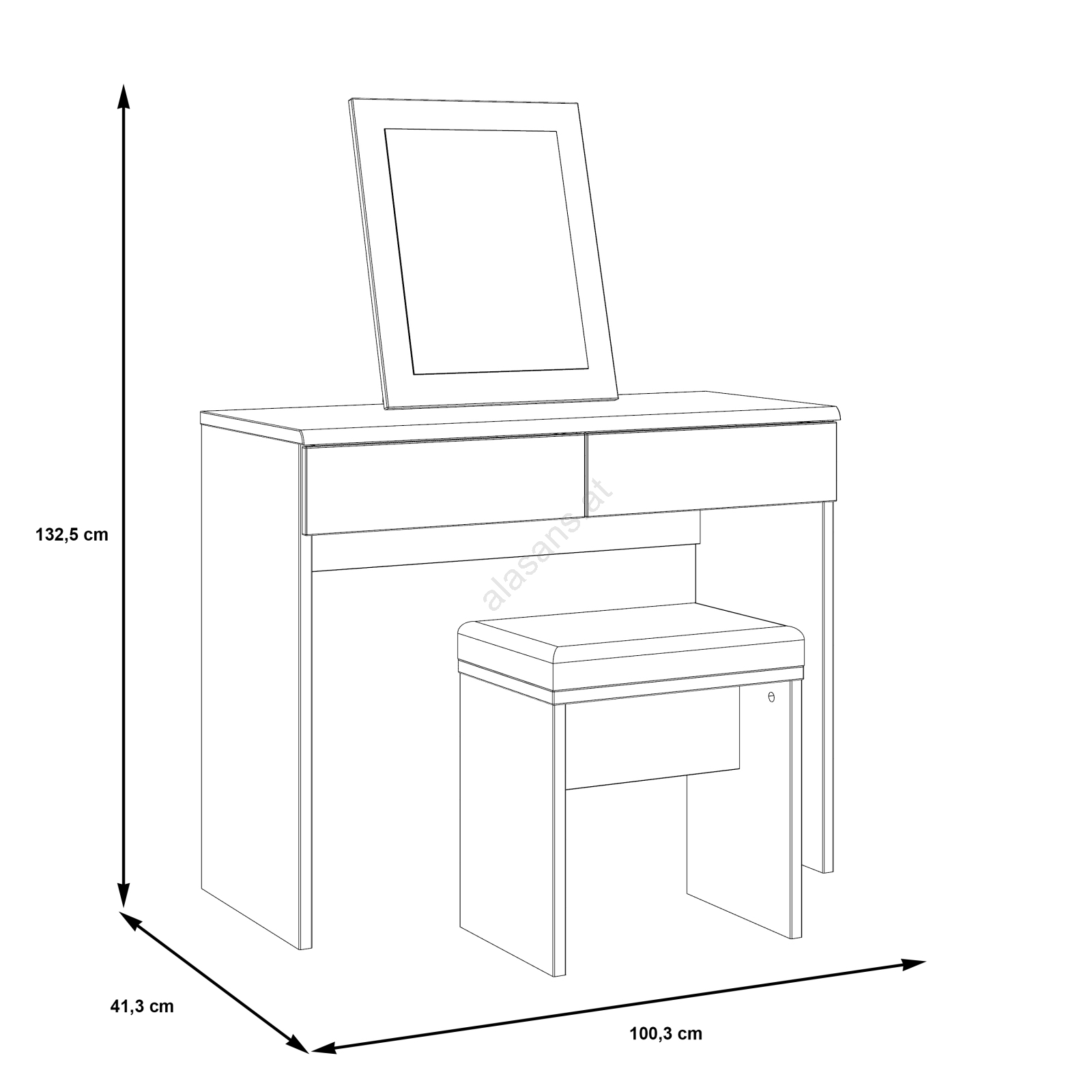 • Er verfügt über zwei Schubladen, die Ihnen reichlich Stauraum für Kosmetik und weitere Utensilien bieten.