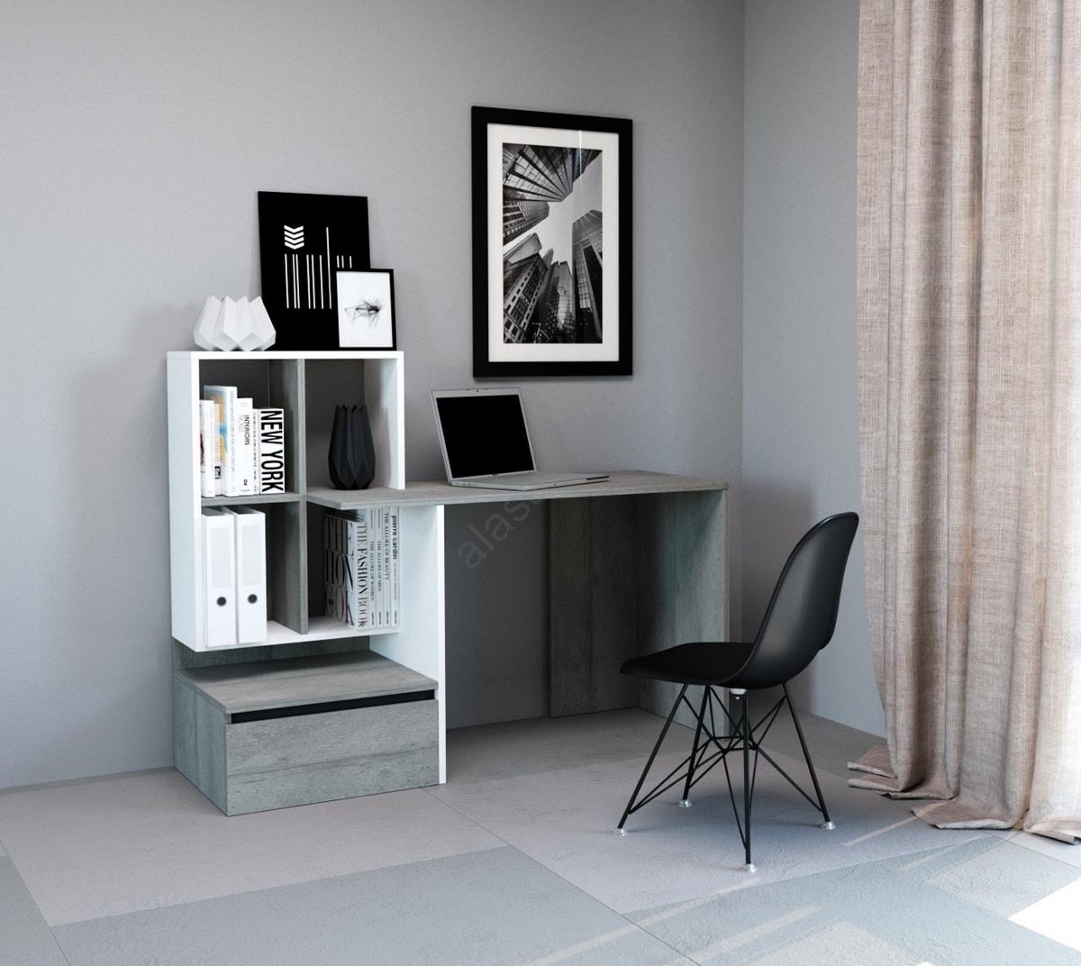 Schreibtisch mit Regal MARLO, Betongrau/Weiß