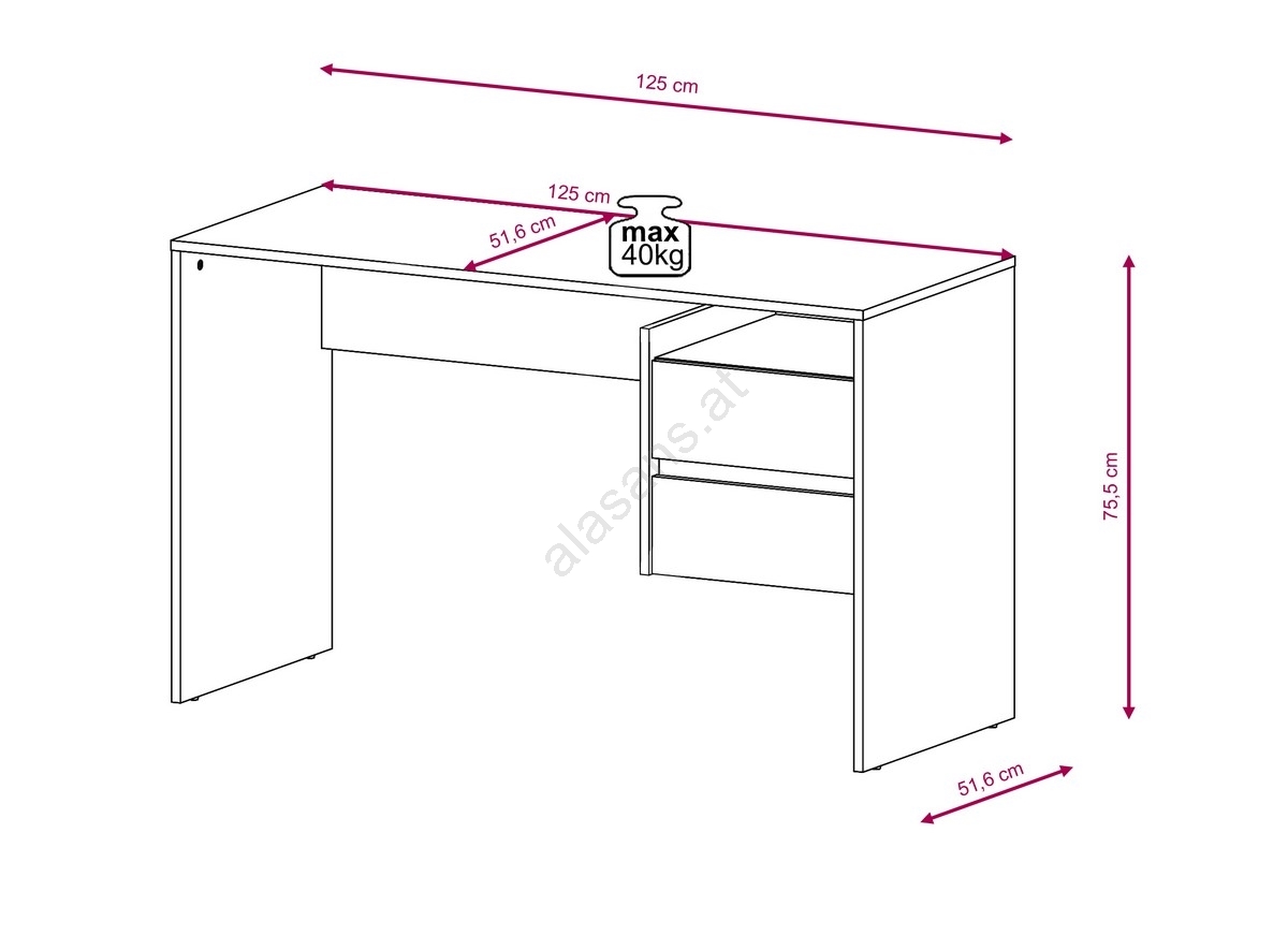 • Verfügt über ein seitliches Regal mit zwei Schubladen, ideal zur Aufbewahrung von Büchern, Bürobedarf oder Dekoration.