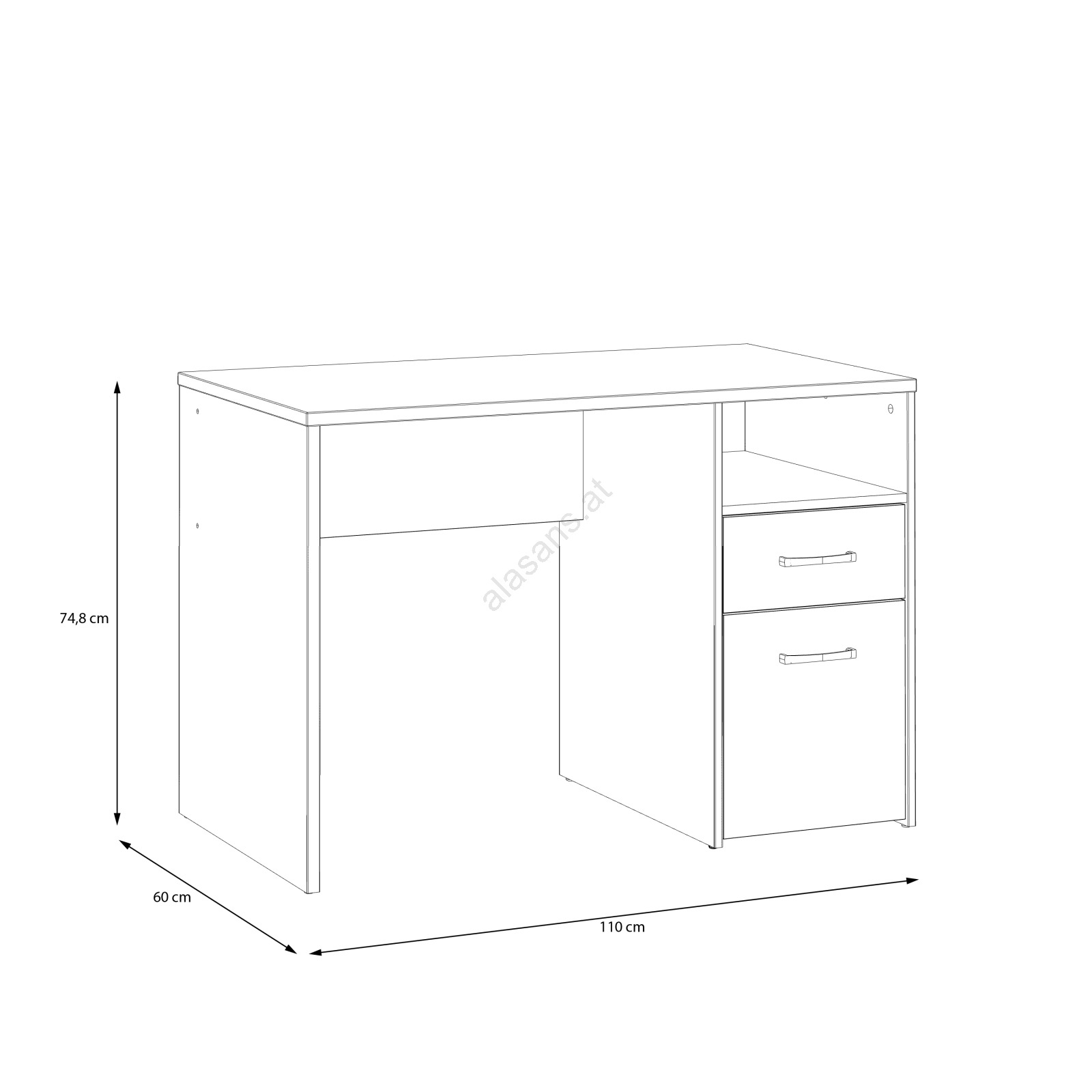 • Dank eines Fachs und einer Schublade bietet der Schreibtisch großzügigen Stauraum zur Organisation von Alltagsgegenständen.