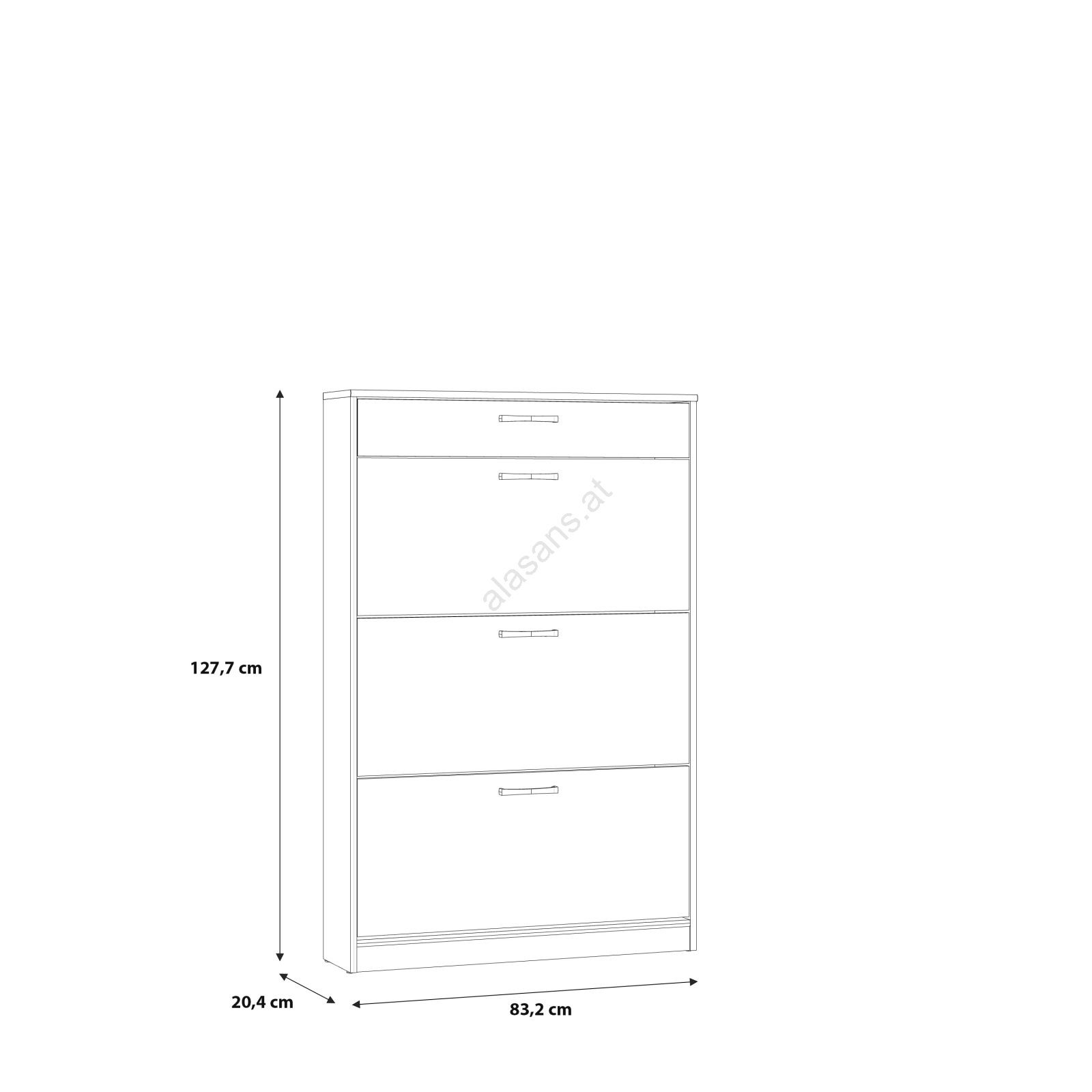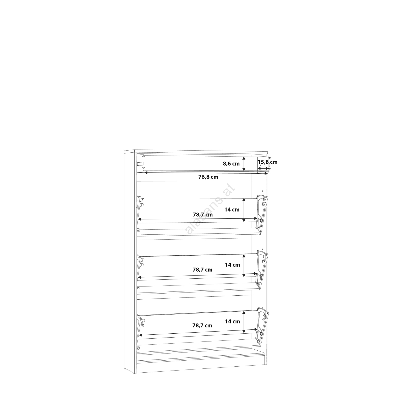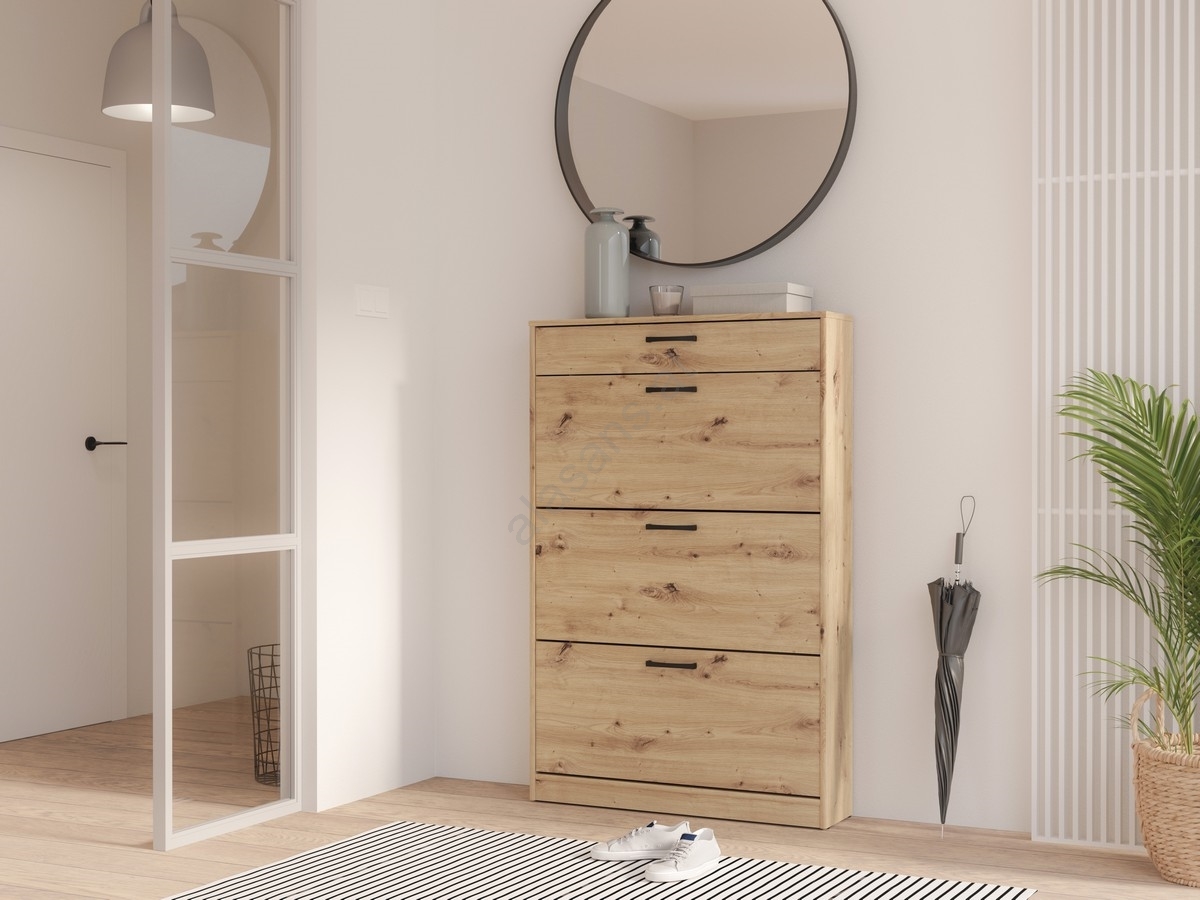 • Dank seiner schlanken Form nimmt dieser Schuhschrank mit vier Ebenen nur wenig Platz am Boden ein und bietet dennoch großzügigen Stauraum.