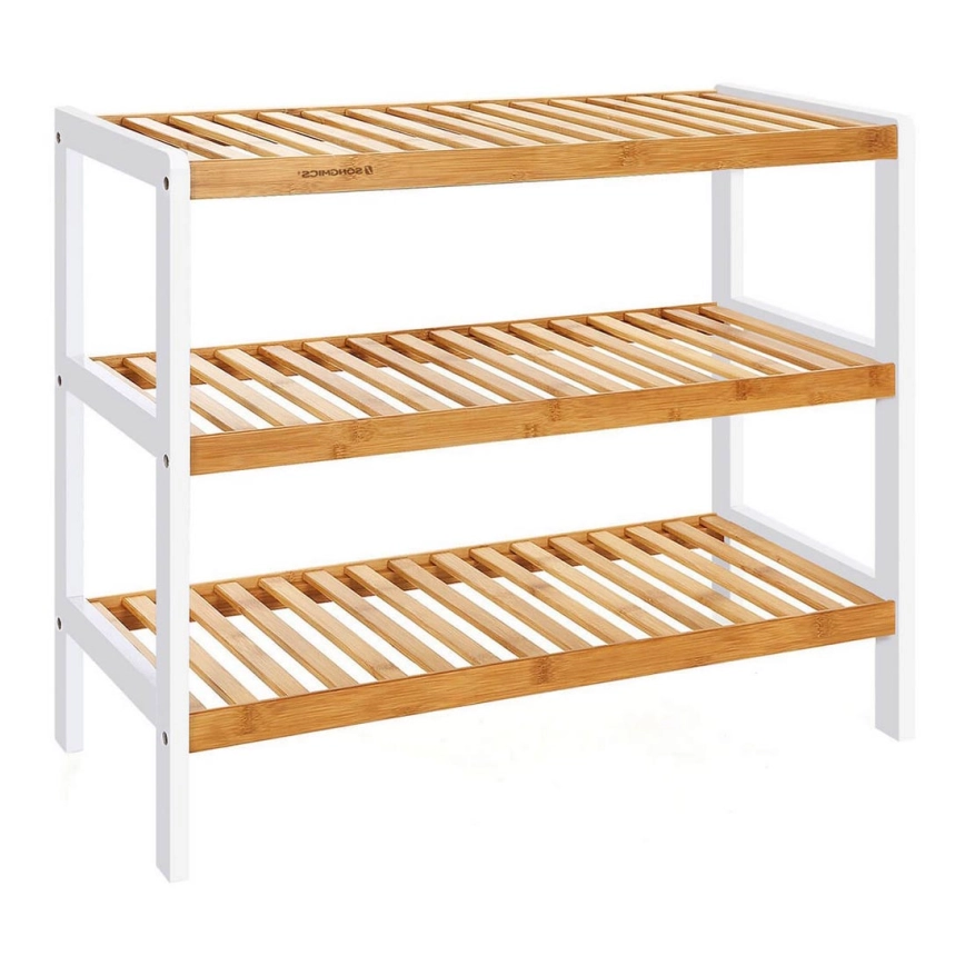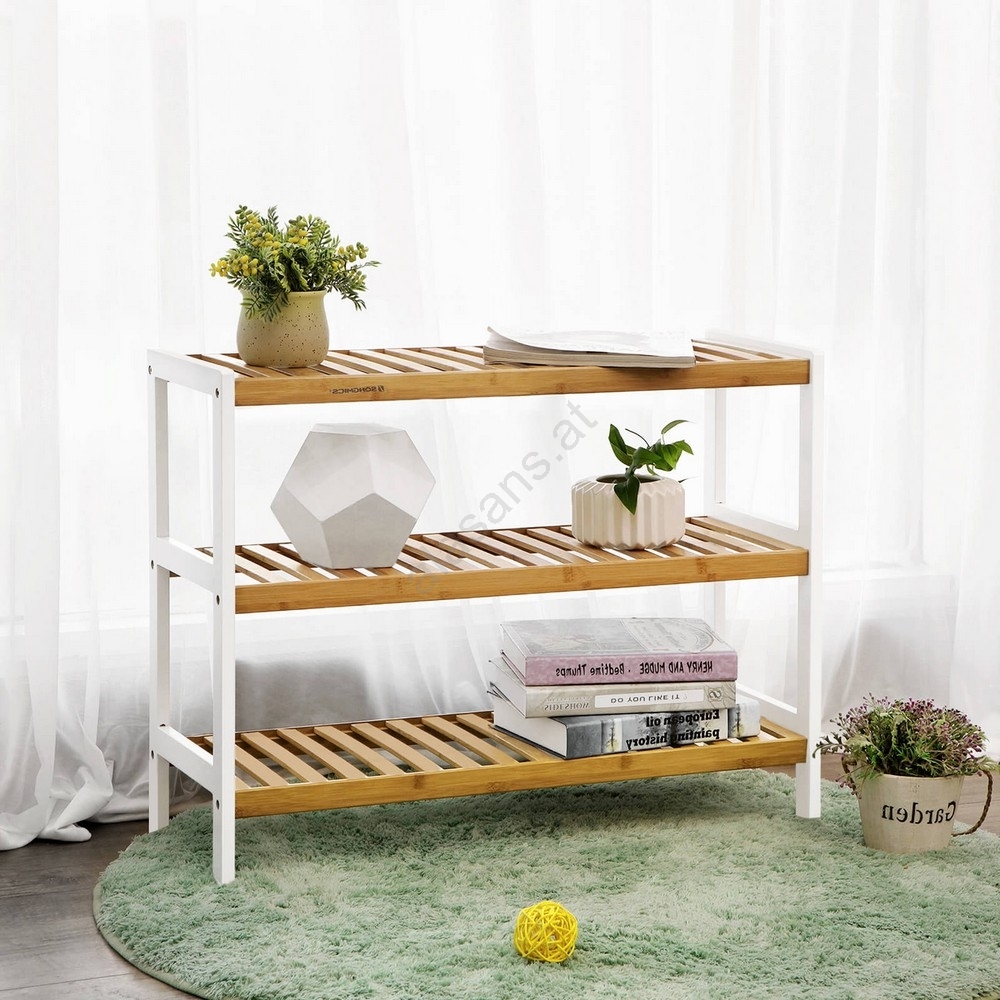 • Dank seiner schlanken Form nimmt dieses 3-stöckige Schuhregal nur wenig Platz am Boden ein und bietet dennoch reichlich Stauraum.