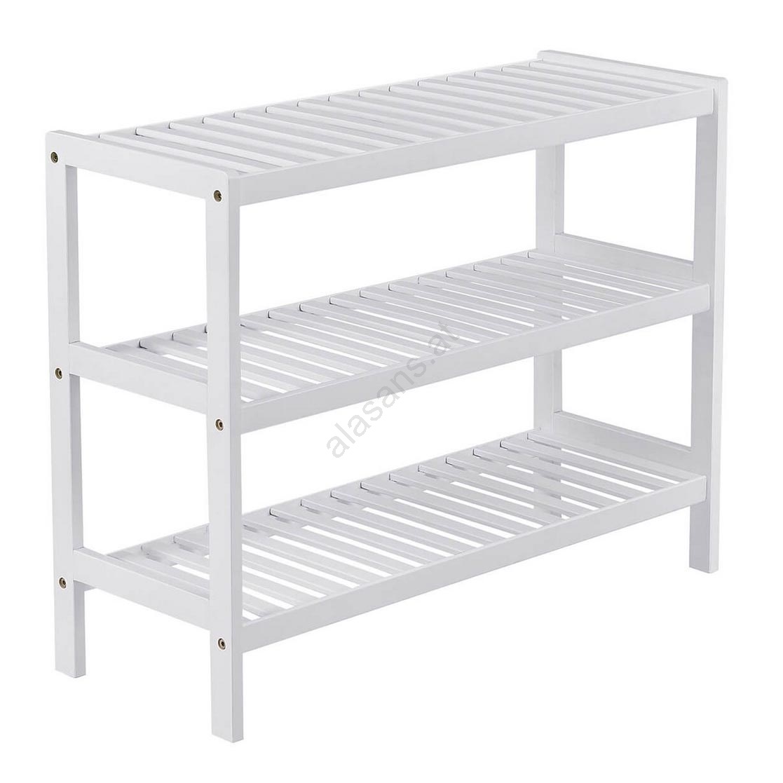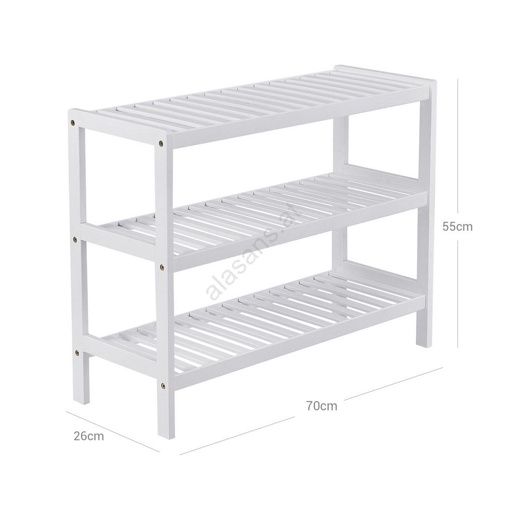 • Dank seiner schlanken Form nimmt dieses dreistöckige Schuhregal wenig Platz am Boden ein und bietet dennoch reichlich Stauraum.