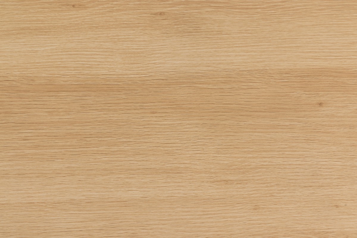 • Rahmen, 3 Schubladen und Regale aus grobem Melamin in Craft-Optik, Sockel aus matt schwarzem, grob pulverbeschichtetem Stahl.