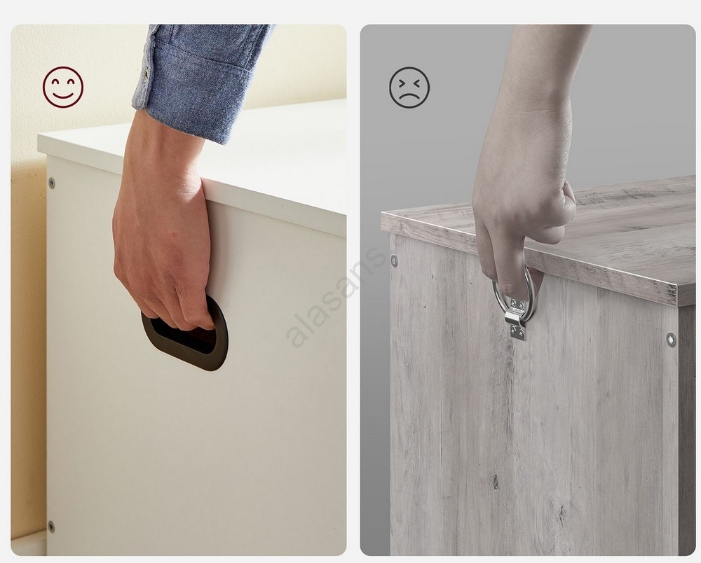 • Dank des schlanken Designs nimmt sie nur wenig Platz auf dem Boden ein und bietet dennoch großzügigen Stauraum.