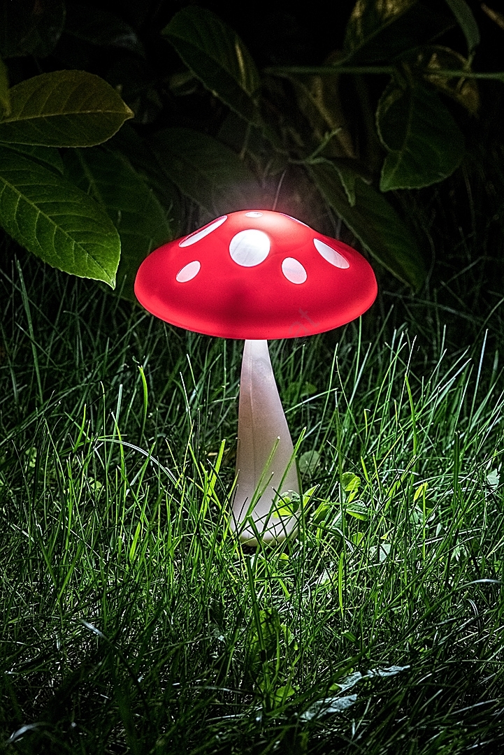 Solarlampe Funghetto mit einem Design in Form eines roten Fliegenpilzes, die ein wirklich fröhliches und natürliches Highlight für Ihren Garten rund ums Haus darstellt. Die weiße und rote dekorative Kunststofflampe im traditionellen Stil ist für die Erdinstallation konzipiert und verfügt über eine integrierte LED-Lichtquelle. Die Leistung der energiesparenden Lichtquelle beträgt 0,06 W bei einer Farbtemperatur von 4.000 K. Die Angaben zur Solarzelle lauten: AAA NiMH 300 mAh. Die Höhe der dekorativen Außenleuchte beträgt 185 mm, der Durchmesser des Lampenschirms 120 mm. Die Schutzart IP44 gewährleistet, dass keine Fremdkörper mit einem Durchmesser von mehr als 1 mm eindringen können und die Lampe gegen Spritzwasser aus allen Richtungen geschützt ist.