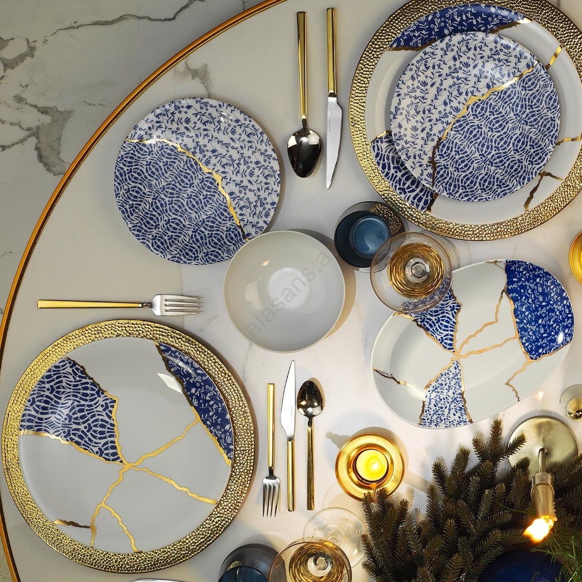 Speiseset 28 St. weiß/gold/blau/Porzellan