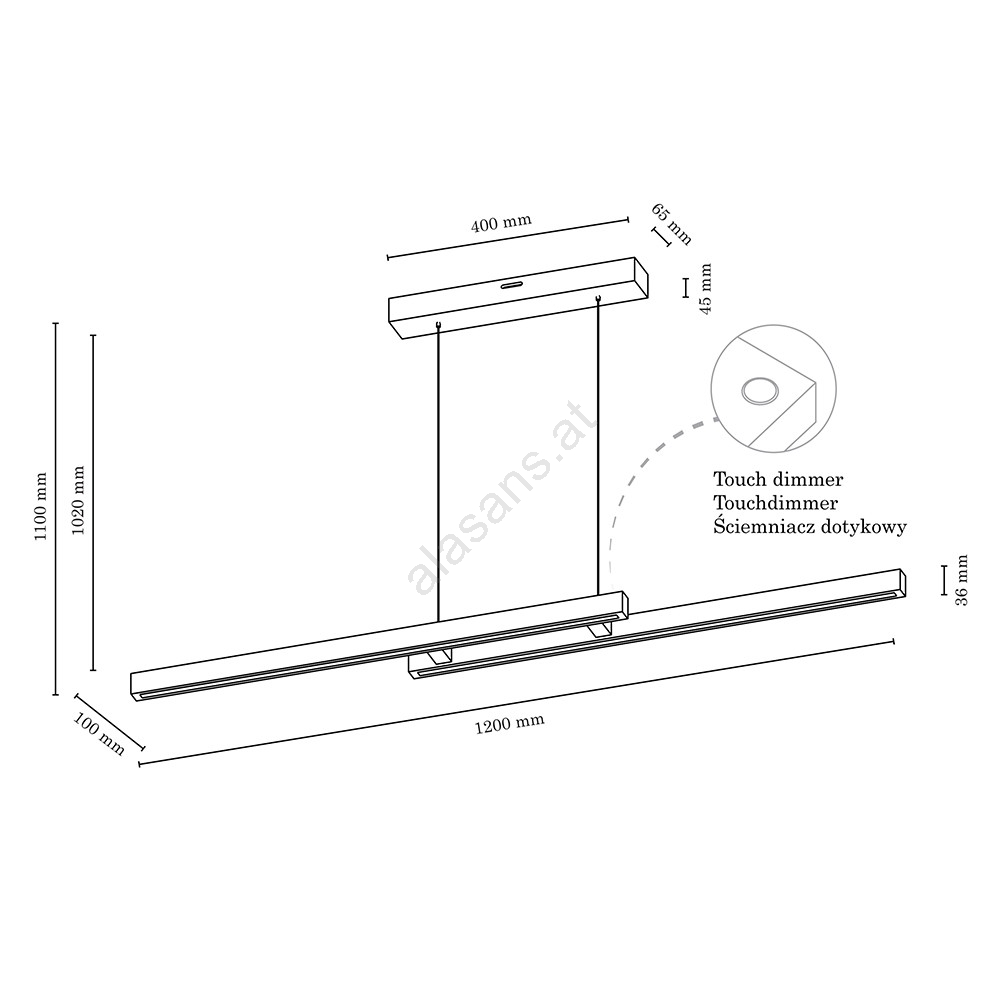 LED-dimmbare Pendelleuchte an Seil SMAL 2xLED/22,5W/230V 2700/4000/6500K Eiche