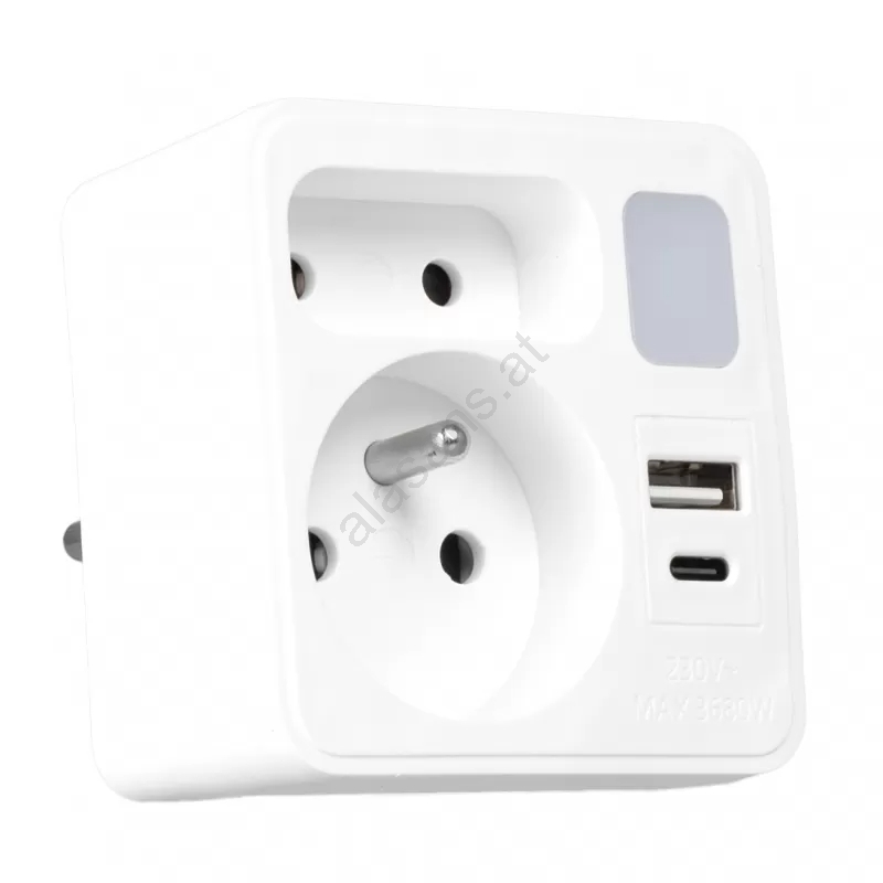 Steckdosenverteiler 2 Steckdosen + USB-C + USB-A mit LED-Beleuchtung LED/0,5W/230V 3000K