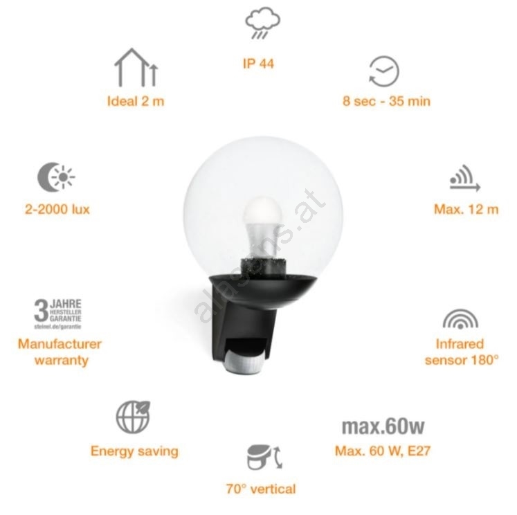 • STEINEL 005535 - Außenwandleuchte mit Sensor L585S 1xE27/60W schwarz IP44
