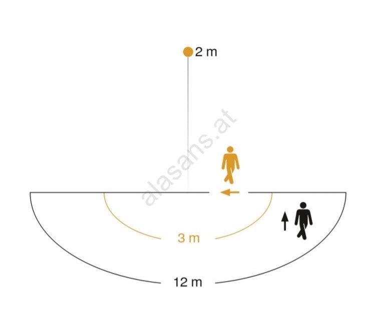 • Der Erfassungsbereich kann genau an die örtlichen Gegebenheiten angepasst werden - die Sensorlinse kann vertikal gedreht und mit den beiliegenden Abdeckblenden abgegrenzt werden.