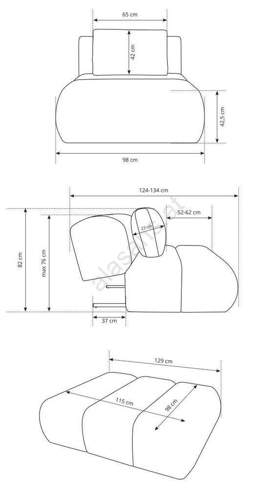 • Die Sitztiefe 52-62 cm bietet ausreichend Platz für entspanntes und ergonomisches Sitzen.