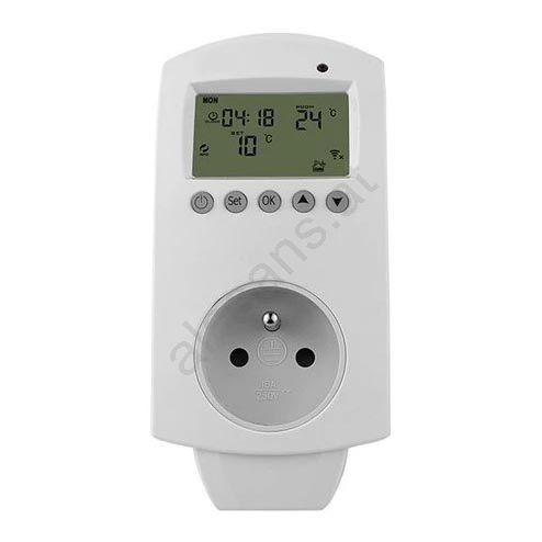 • Steuert die Stromzufuhr des angeschlossenen Geräts über die Ausgangssteckdose gemäß dem gewählten Programm und sorgt so für sparsames und komfortables Heizen.