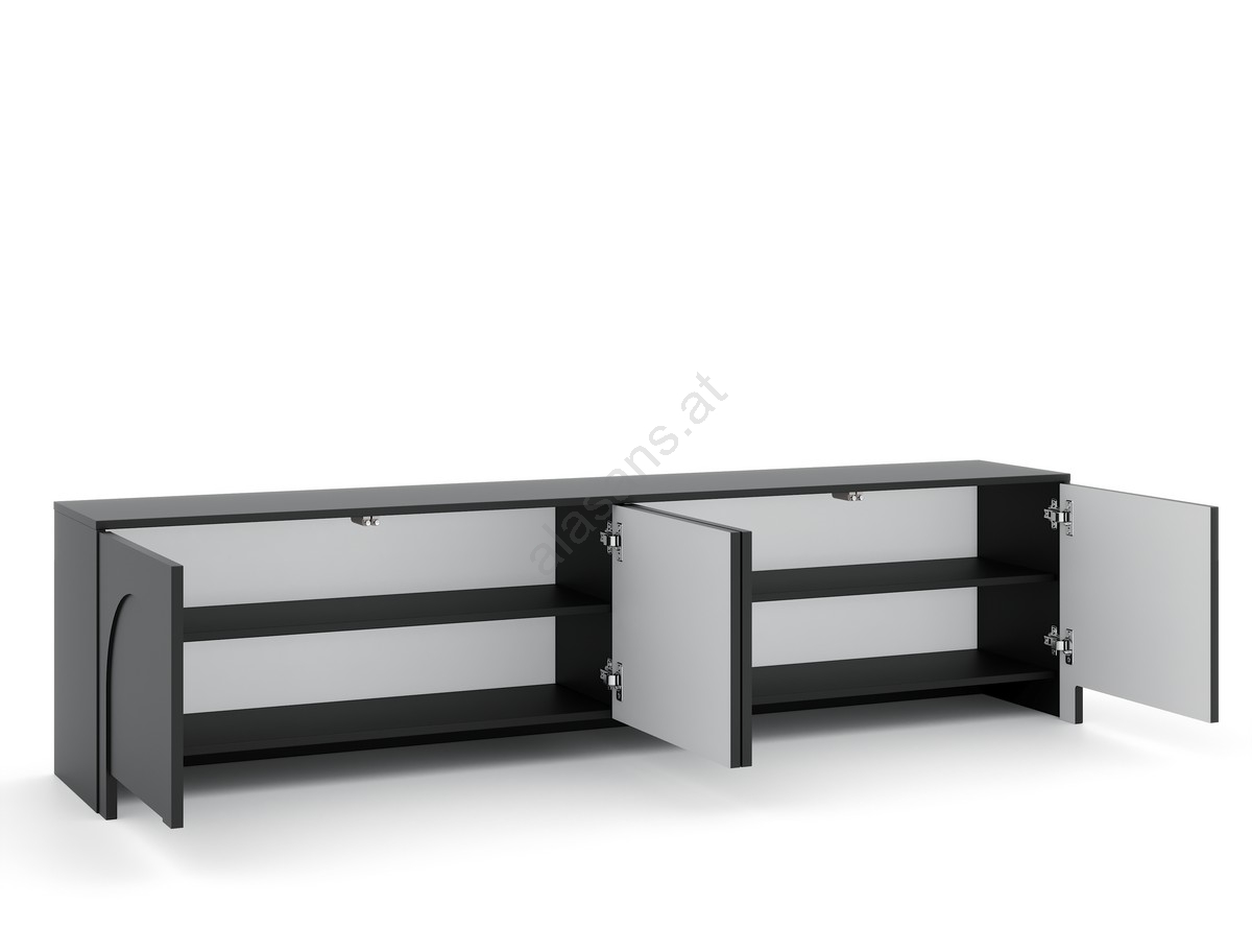 • Dank seiner langen, rechteckigen Form ist es ideal zur Platzierung unter einem an der Wand montierten Fernseher oder als modernes Aufbewahrungsmöbel im Wohnzimmer.