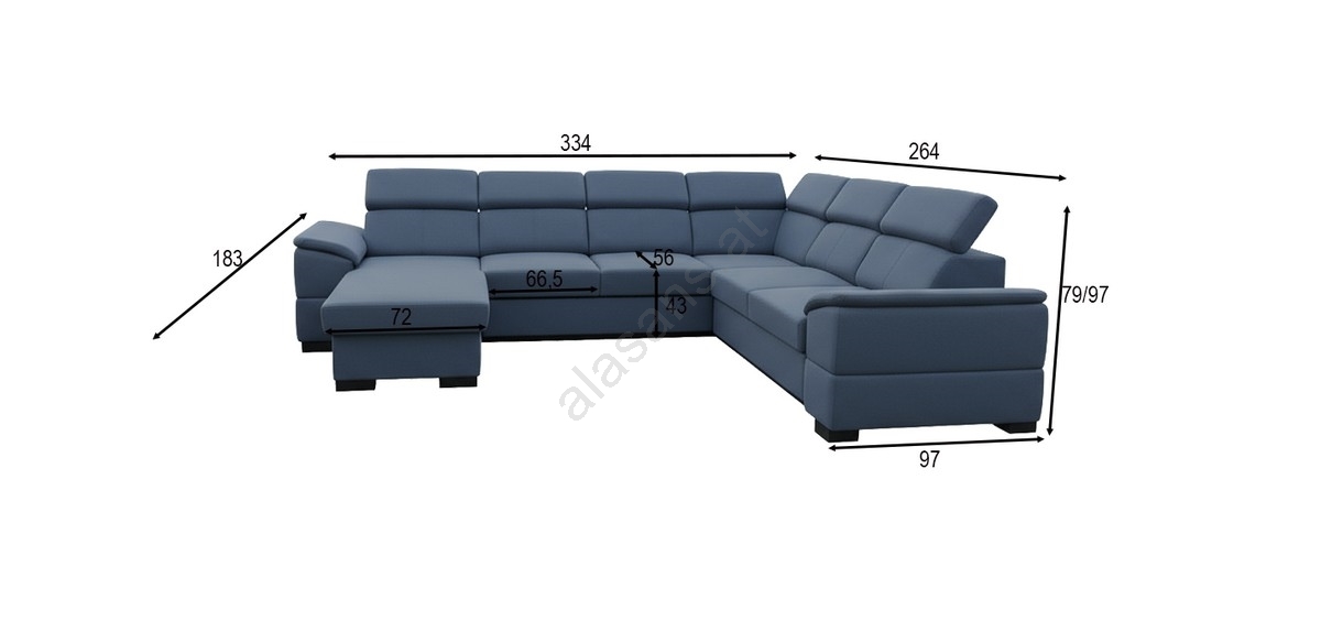 • Polsterecke mit Schlaffunktion, universellem Eckteil und Stauraum GRANADA, blau