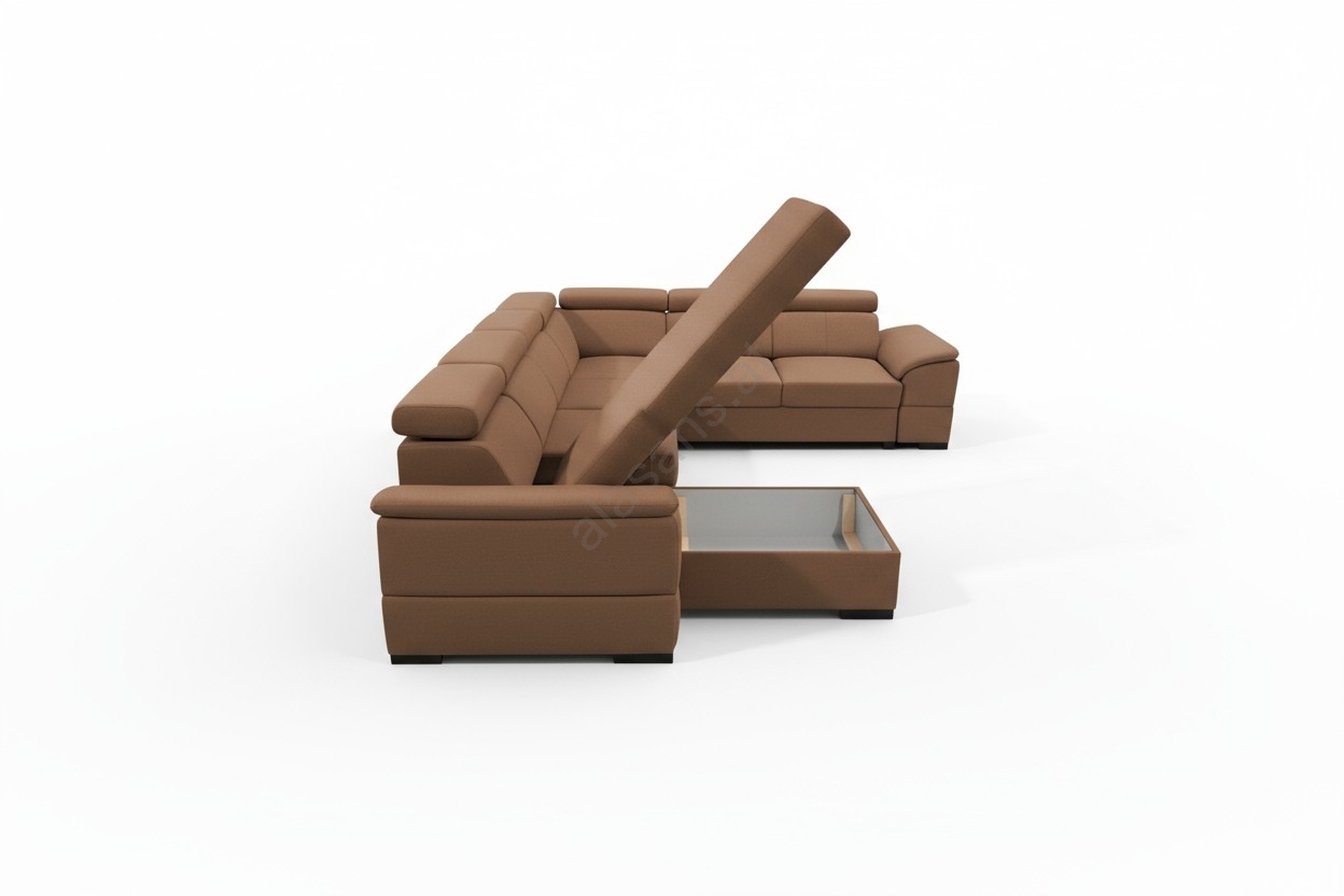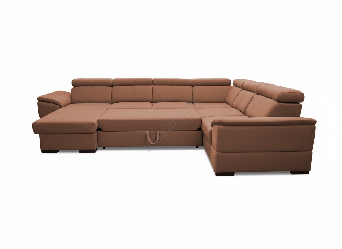 Ausziehbare U-Eckgarnitur mit beidseitig montierbarem Eckelement und Stauraum GRANADA, braun