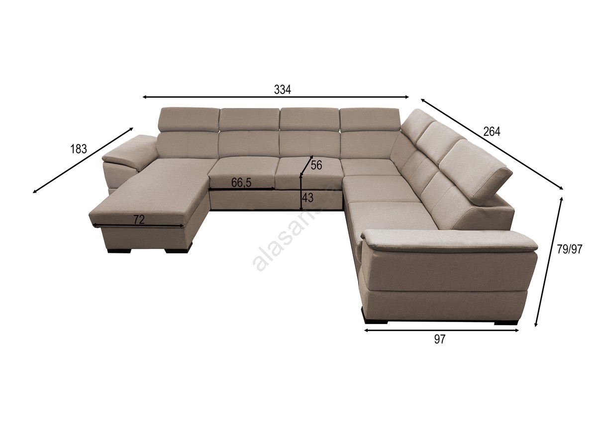 U-förmiges Ecksofa mit Schlaffunktion, universell montierbarer Ecke und Stauraum GRANADA Beige