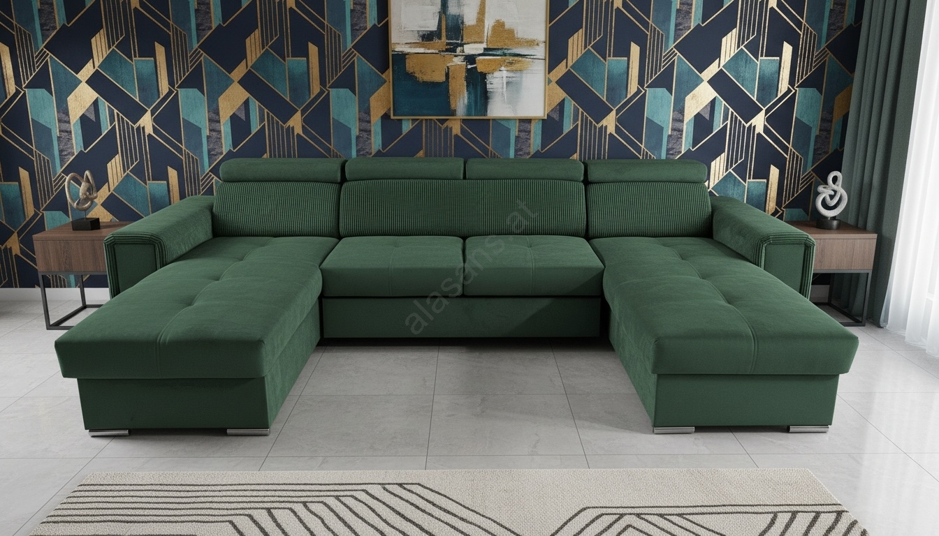 • Geräumiges Ecksofa in U-Form ist ideal für den täglichen Schlaf und bietet sowohl Komfort als auch ein stilvolles Design.