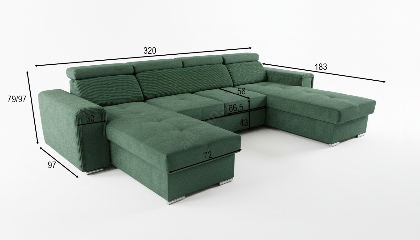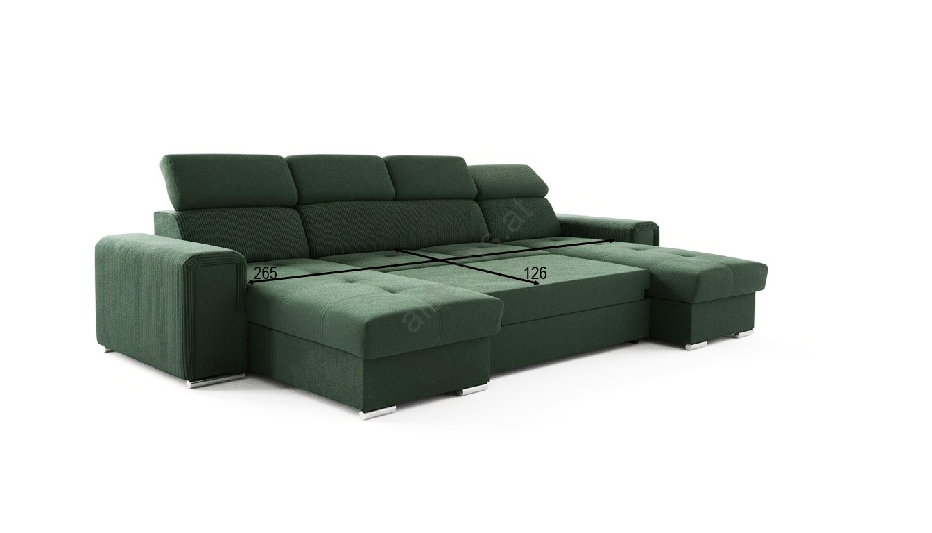 • Ausziehbare Polsterecke mit universeller U-Form und Stauraum SALVADA grün