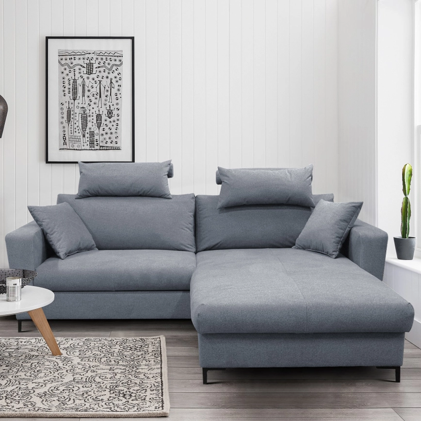 • Ausklappbare Eckgarnitur mit Stauraum in L-Form HORTA, rechts, grau