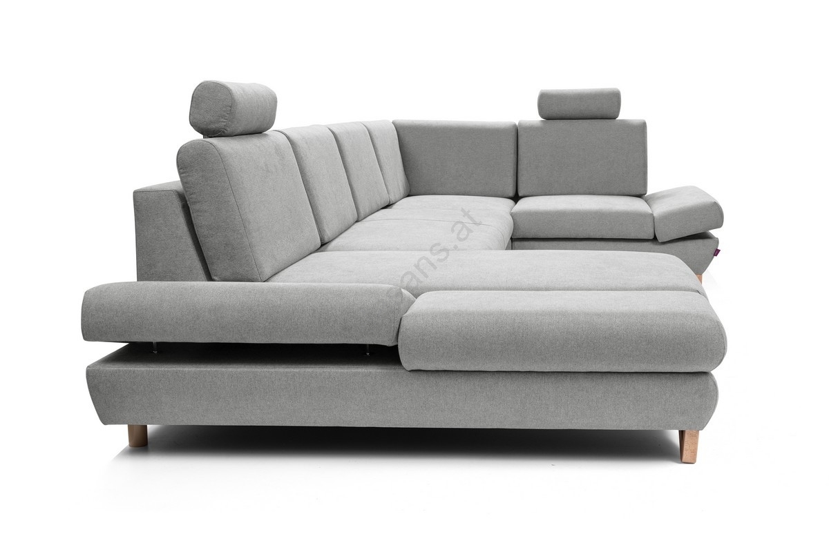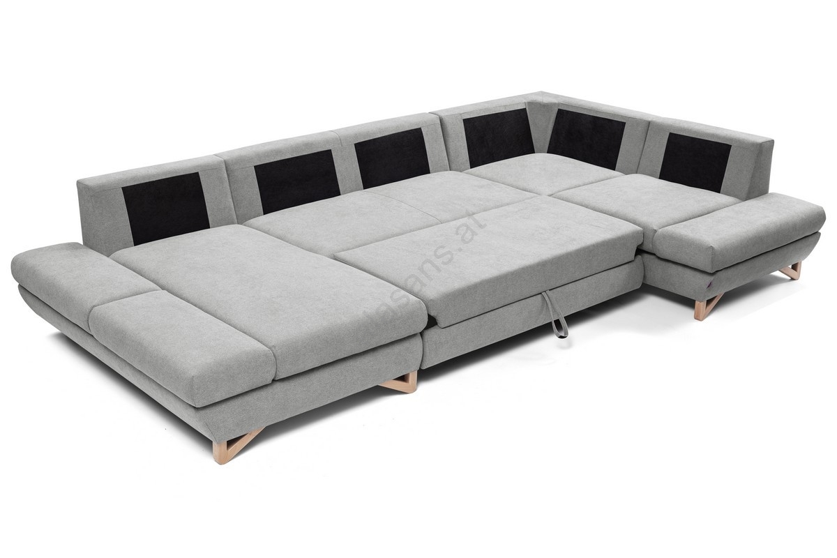 U-förmiges, gepolstertes Ecksofa AVESTA mit Schlaffunktion und Stauraum, grau