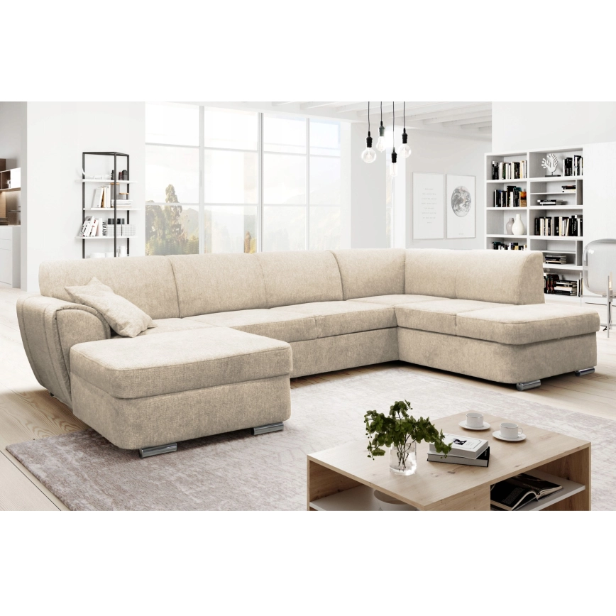 Ausziehbares U-Ecksofa SERPA, rechts, mit Schlaffunktion und Stauraum, Beige