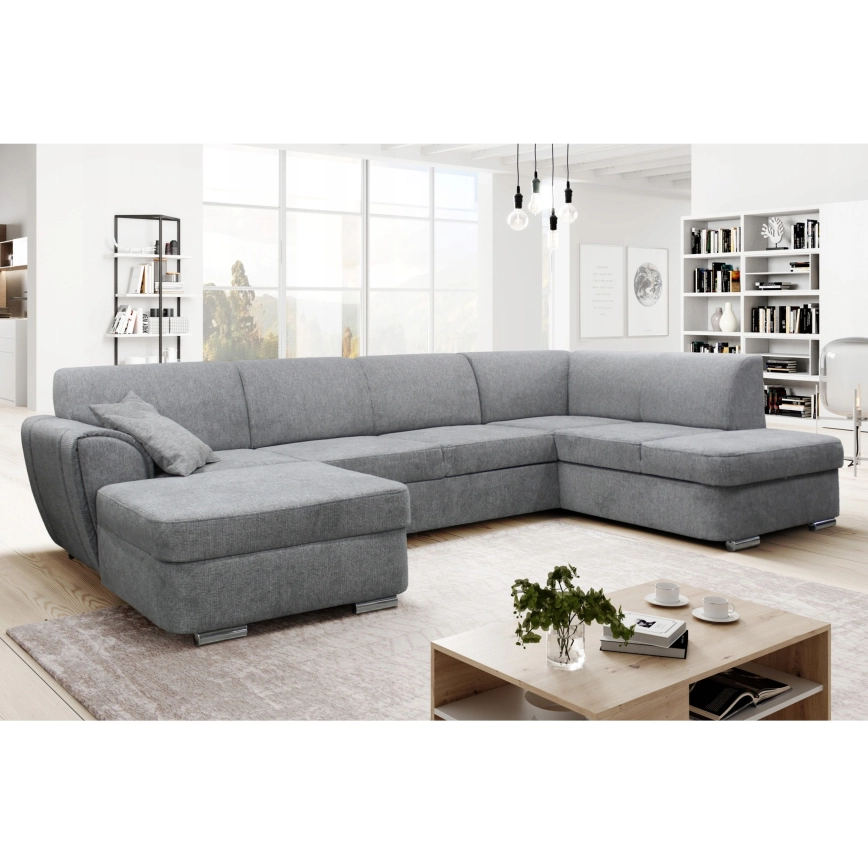 U-förmiges, ausziehbares Ecksofa mit Stauraum SERPA, rechts, grau