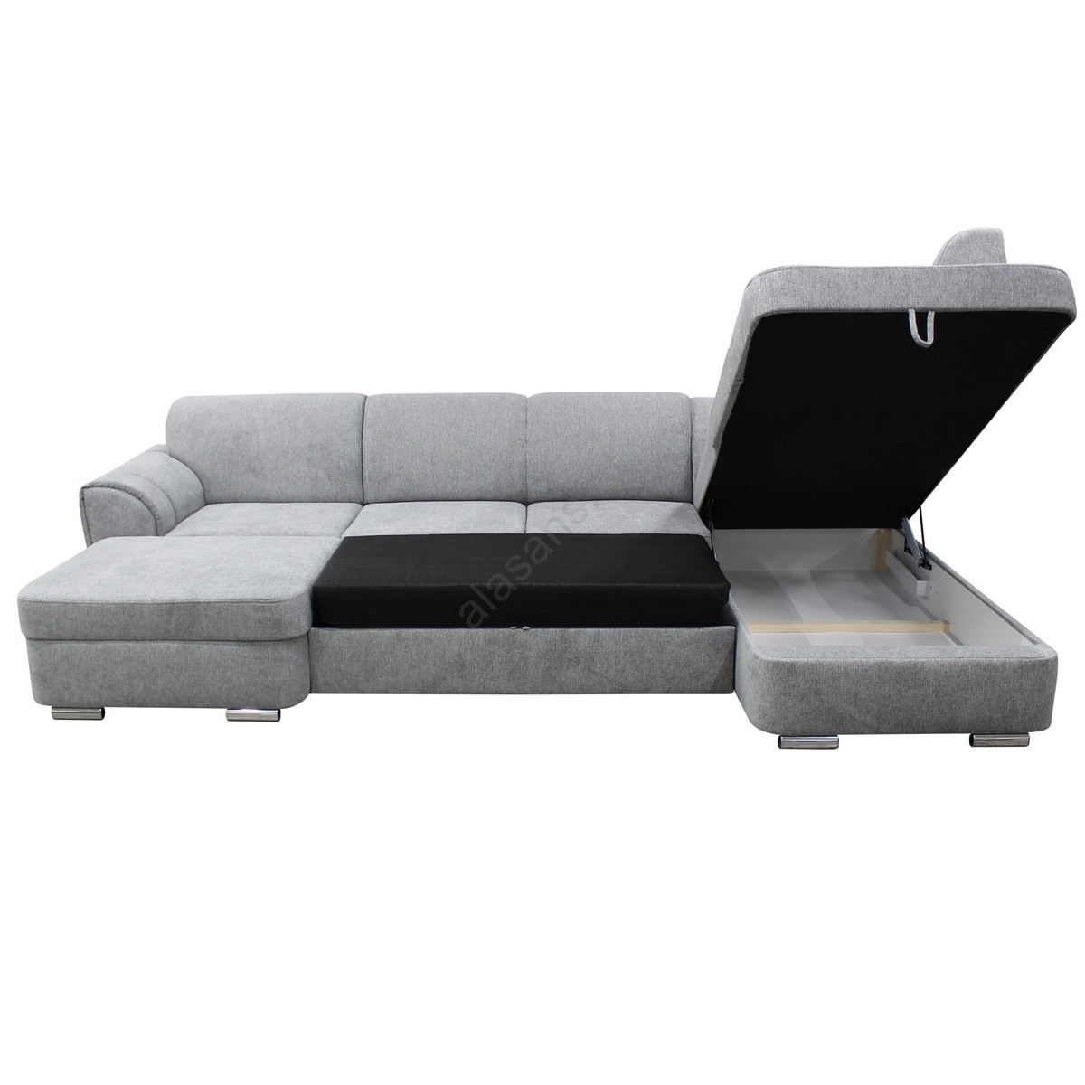 • U-förmiges, ausklappbares Ecksofa SERPA mit Stauraum, links, grau